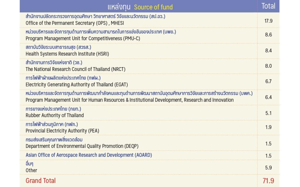 - ส่งมอบผลผลิตจากโครงการร่วมวิจัย/รับจ้างวิจัย/ให้คำปรึกษา/บริการมาตรฐาน ให้แก่ภาครัฐและเอกชน 405 รายการ ประกอบด้วย