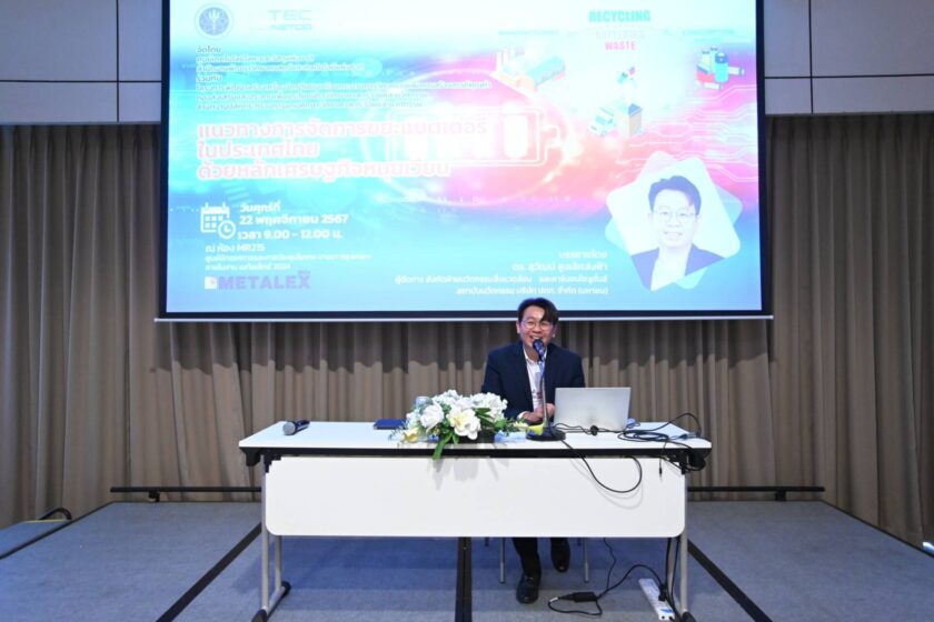 การจัดการขยะแบตเตอรี่จากยานยนต์ไฟฟ้าในประเทศไทย มีแนวโน้มจะมีปริมาณมากขึ้นและอาจสะสมจนก่อให้เกิดปัญหาด้านการบริหารจัดการขยะเฉพาะกลุ่มดังกล่าวได้หากไม่มีการเตรียมความพร้อมในการรับมืออย่างเหมาะสม การบรรยายในหัวข้อแนวทางการจัดการขยะแบตเตอรี่ในประเทศไทยด้วยหลักเศรษฐกิจหมุนเวียน นำเสนอข้อมูลเชิงเทคนิคที่เป็นประโยชน์สำหรับการนำไปประยุกต์ใช้เพื่อการสื่อสารในกิจกรรมที่เกี่ยวข้อง และอาจนำไปสู่การมีส่วนร่วมในการบรรเทาปัญหาขยะแบตเตอรี่ได้ในอนาคต
