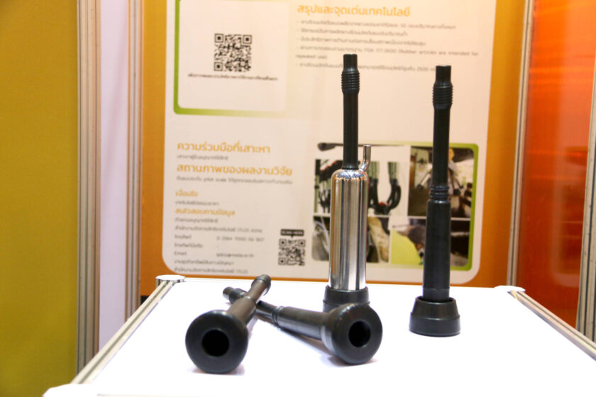 ในงาน เอ็มเทค นำผลงานพร้อมใช้ ร่วมจัดแสดงโซนนิทรรศการ ในงาน THAILAND TECH SHOW 2024 ประกอบด้วย 1) ยางรีดนมโคคุณภาพสัญชาติไทย 2) น้ำยางข้นแอมโมเนียต่ำมาก (ULA: Ultra Low Ammonia Latex) 3) สารยืดอายุน้ำยางสดเพื่อการผลิตยางแผ่น BeThEPS 4) ดินปั้นจากสารธรรมชาติ (Para-Dough) 5) ต้นแบบแพลตฟอร์มเต้านมจำลอง เพื่อช่วยในการฝึกทำหัตถการนำเข็มด้วยอัลตราซาวด์เพื่อเก็บชิ้นเนื้อตรวจ