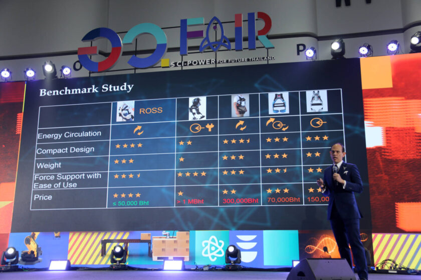 นอกจากนี้ ภายในงานยังจัดให้มีเวที Investment Pitching งาน Thailand Tech Show 2024 ซึ่งเป็นส่วนหนึ่งของงาน “อว. แฟร์ 2567: SCI-POWER For Future Thailand” ซึ่งเป็นเวทีที่จะเปิดโอกาสทางธุรกิจในการนำเสนอผลงานต่อนักลงทุนและนักอุตสาหกรรม กับ ผลงานวิจัยที่มีความพร้อมถ่ายทอดผลงานให้กับผู้ประกอบการที่มองหาโอกาสและช่องทางในการทำธุรกิจเทคโนโลยี ซึ่งในปีนี้ มีจำนวนทั้งสิ้น 8 ผลงานจาก สวทช. 5 ผลงาน และพันธมิตร 3 ผลงาน โดยมี ดร.ธนรรค อุทกะพันธ์ นักวิจัยเอ็มเทค นำเสนอผลงาน “Ross” (รอสส์) Motion-Assist Exosuit: ผู้ช่วยคนใหม่ของเหล่าผู้ดูแล บนเวทีร่วมด้วย