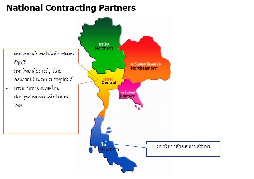 | 3 | บันทึกข้อตกลงความร่วมมือเครือข่ายนวัตกรรมยางพารา ระหว่าง สำนักงานพัฒนาวิทยาศาสตร์และเทคโนโลยีแห่งชาติ (โดย ศว.) การยางแห่งประเทศไทย (กยท.) มหาวิทยาลัยสงขลานครินทร์ (ม.อ.) และ สภาอุตสาหกรรมแห่งประเทศไทย (ส.อ.ท.) | การยางแห่งประเทศไทย (กยท.)/ มหาวิทยาลัยสงขลานครินทร์ (ม.อ.)/ สภาอุตสาหกรรมแห่งประเทศไทย (ส.อ.ท.) | กลุ่มวิจัยนวัตกรรมการแปรรูปยาง |