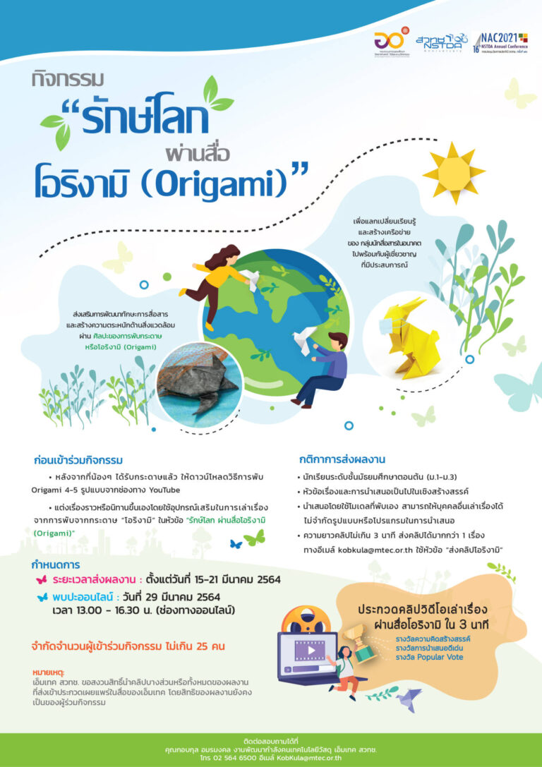 The post กิจกรรมการประกวดคลิปสั้น ภายใต้แนวคิด “รักษ์โลก ผ่านสื่อโอริงามิ (Origami)” appeared first on MTEC ศูนย์เทคโนโลยีโลหะและวัสดุแห่งชาติ.
