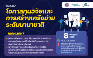 ขอเชิญผู้สนใจเข้าร่วมงานสัมมนา “โอกาสทุนวิจัยและการสร้างเครือข่ายระดับนานาชาติ” เปิดมุมมองใหม่ด้านโอกาสทุนวิจัยและแนวทางการขยายเครือข่ายความร่วมมือกับนานาประเทศ เพื่อการพัฒนางานวิจัยอย่างยั่งยืน วันอังคารที่ 8 กรกฎาคม 2568 เวลา 13.30 – 15.30 น. ห้องประชุม BIOTEC … Read more