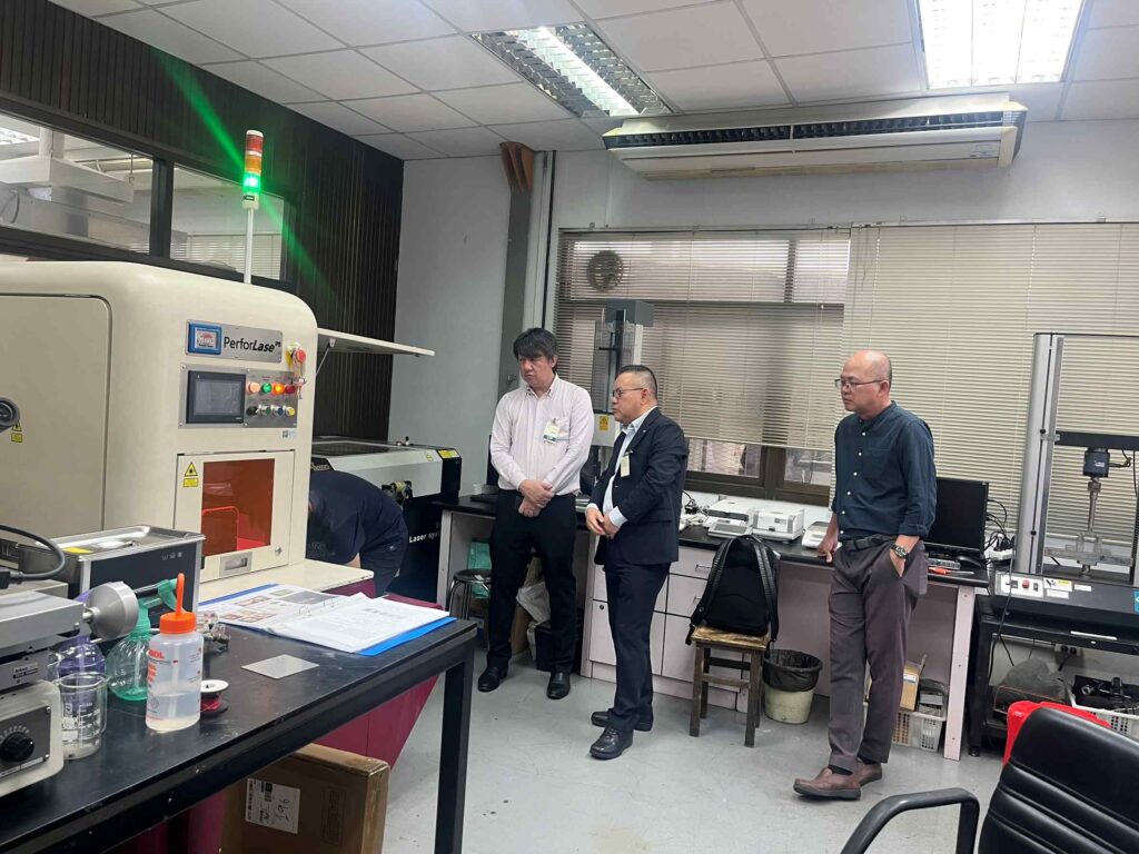 Following the discussions, the delegation visited the Plastics Technology Laboratory at the MTEC Pilot Plant building, which conducts a wide range of research and development activities, including material selection and development, plastic product design and development, forming process development, and product testing and analysis. Dr. Bongkot Hararak, a researcher from the Plastic Product Development Research Team, provided an in-depth overview of the laboratory’s capabilities, which attracted the delegation’s attention. The visit also allowed for the exchange of ideas on plastic product design and development, as well as prospective collaboration with private sector partners to help the translation of research findings into industrial applications.