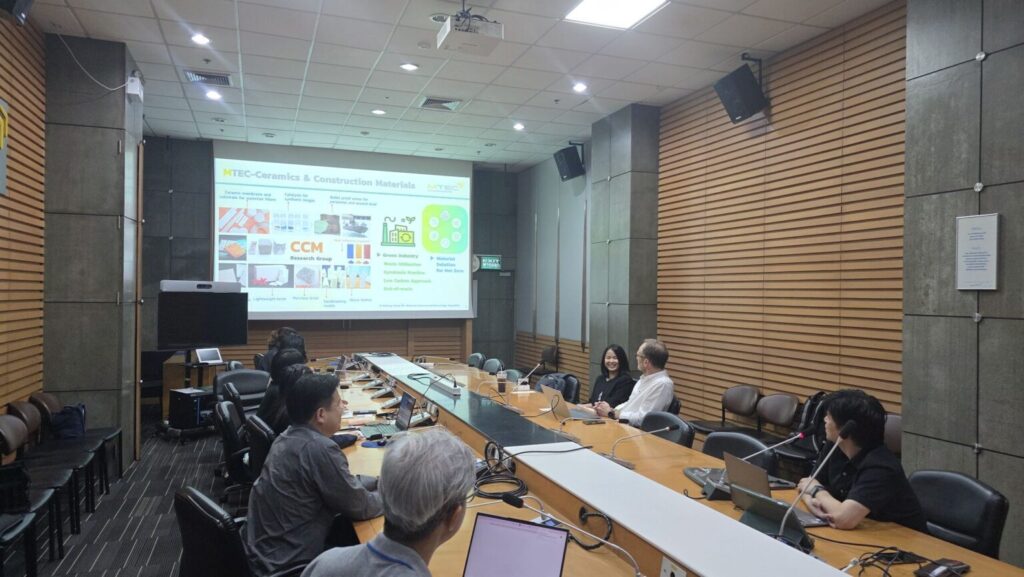 The meeting was presided over by Dr. Anucha Wannagon, Director of the Ceramics and Construction Materials Research Group (CCM), and Dr. Pitak Laoratanakul, Head of the Sustainable Cement and Composite Materials Research Team (SCMT), accompanied by a specialized research cohort. The MTEC research faculty facilitated an extensive dialogue focused on the integration of technologies into industrial management, specifically emphasizing hyperspectral technology, digital twins, artificial intelligence (AI) to optimize mineral exploration and enhance plant operational efficiency through