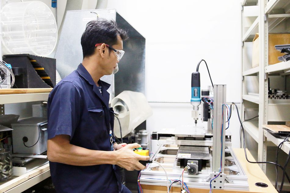 เอนก ภู่จำนงค์ วิศวกร ของ MTEC เลือกเพิ่มดีกรีความสุขให้กับชีวิตด้วยงานอดิเรกที่เขารัก สร้างสรรงาน DIY จากวัสดุอุปกรณ์ที่มีอยู่บนโต๊ะและห้องทำงาน ใช้เวลา 1 เดือนสามารถสร้างเครื่องมินิซีเอ็นซี ( Mini CNC ) ที่สามารถทำงานซับซ้อนด้วยระบบโดยกลไกไฟฟ้า อิเล็กทรอนิกส์ เขาลงทุนควักกระเป๋าซื้อโปรแกรมเพื่อนำมาใช้งานกับเครื่อง ให้มีประสิทธิภาพหรือเทียบเท่าเครื่องที่มีอยู่ทั่วไป