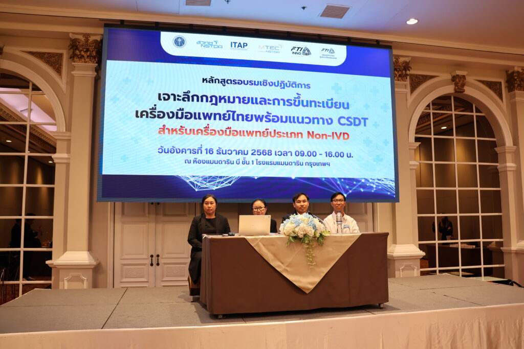 กระทรวงการอุดมศึกษา วิทยาศาสตร์ วิจัยและนวัตกรรม (อว.) โดยโปรแกรมสนับสนุนการพัฒนาเทคโนโลยีและนวัตกรรม (ITAP) และศูนย์เทคโนโลยีโลหะและวัสดุแห่งชาติ(เอ็มเทค) สำนักงานพัฒนาวิทยาศาสตร์และเทคโนโลยีแห่งชาติ (สวทช.) ร่วมกับ สภาอุตสาหกรรมแห่งประเทศไทย จัดการอบรมเชิงปฏิบัติการหัวข้อ “เจาะลึกกฎหมายและการขึ้นทะเบียนเครื่องมือแพทย์ไทย พร้อมแนวทาง CSDT สำหรับเครื่องมือแพทย์ประเภท Non-IVD” เพื่อเสริมสร้างความรู้ ความเข้าใจด้านกฎหมายและกระบวนการขึ้นทะเบียนเครื่องมือแพทย์ให้แก่ผู้ประกอบการ นักวิจัย และผู้ที่เกี่ยวข้องในอุตสาหกรรมเครื่องมือแพทย์ไทย