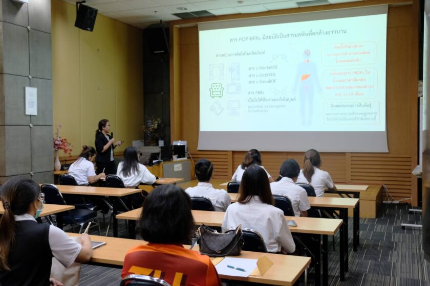 ศูนย์เทคโนโลยีโลหะและวัสดุแห่งชาติ (เอ็มเทค) สวทช. นำโดย ดร.เสมอแข จงธรรมานุรักษ์ : หัวหน้าทีมวิจัย ทีมวิจัยสารอันตรายจากวัสดุ กลุ่มวิจัยด้านสิ่งแวดล้อม เอ็มเทค ให้การต้อนรับนักศึกษาปริญญาตรี ชั้นปีที่ 4 และปริญญาโท สาขาวิชาวิทยาศาสตร์สิ่งแวดล้อม มหาวิทยาลัยธรรมศาสตร์ ในโอกาสเข้ารับฟังการบรรยาย ในหัวข้อ “การจัดทำทำเนียบสารมลพิษที่ตกค้างยาวนาน หรือ Identification of Emerging Pollutants & Solutions” เพื่อนำความรู้ที่ได้รับเกี่ยวกับกระบวนการที่สำคัญในการบริหารจัดการสารเคมีที่มีผลกระทบต่อสิ่งแวดล้อมและสุขภาพของมนุษย์ สารมลพิษที่ตกค้างยาวนานมักมีคุณสมบัติในการสะสมในสิ่งมีชีวิตและสามารถส่งผลกระทบต่อระบบนิเวศและสุขภาพในระยะยาวไปประยุกต์ใช้ในการเรียนการสอน