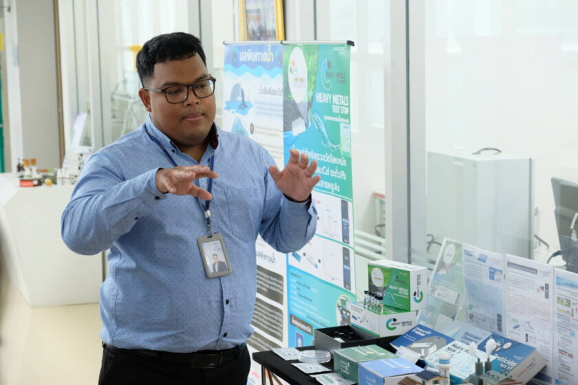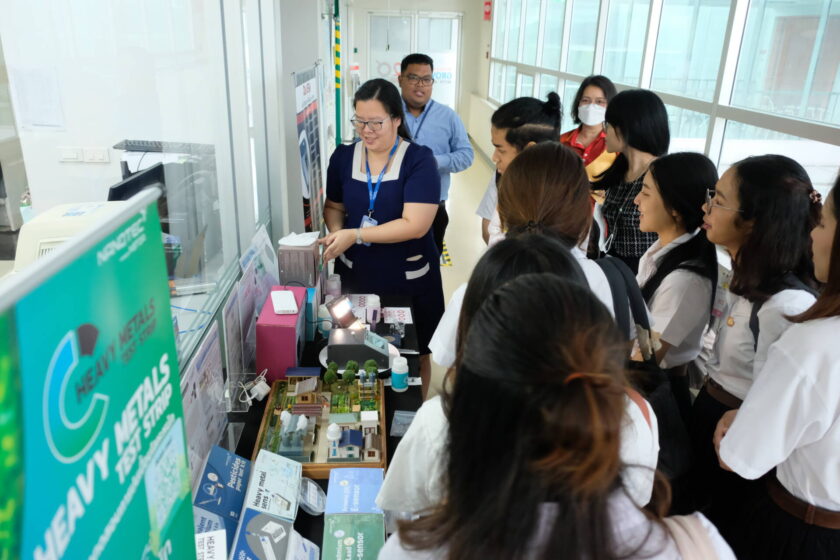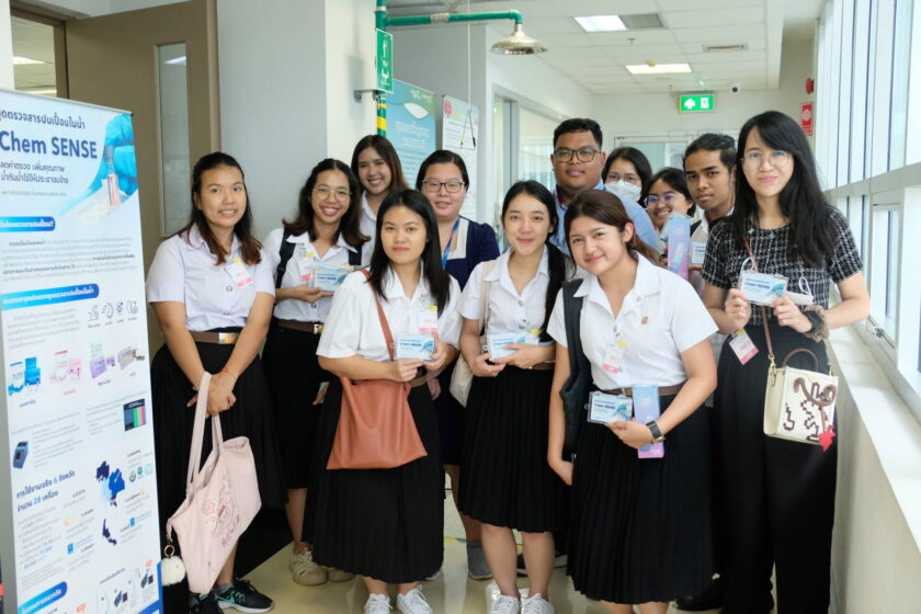 นอกจากนี้ คณะฯได้เข้าเยี่ยมชม ห้องปฏิบัติการ : ทีมวิจัยวัสดุตอบสนองระดับนาโน โดยมี ดร.ติ๊ก อุ้ยรัมย์ ผู้ช่วยปฏิบัติงานวิจัย ทีมวิจัยวัสดุตอบสนองระดับนาโน (RNM) กลุ่มวิจัยวัสดุตอบสนองและเซ็นเซอร์ระดับนาโน (RMNS) ศูนย์นาโนเทคโนโลยีแห่งชาติ (NANOTEC) และทีมวิจัย นำเสนอข้อมูลที่เกี่ยวข้อง พร้อมทั้งเปิดโอกาสให้นักศึกษาได้ทดลองใช้ทักษะในการทดสอบสารเคมีในน้ำด้วยเครื่องมือที่ทันสมัยร่วมด้วย