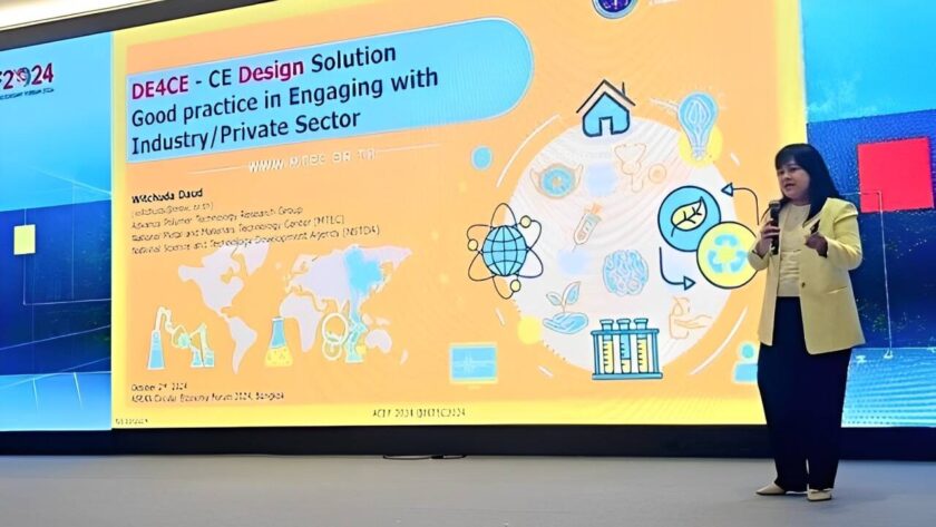 ดร.วิชชุดา เดาด์ ผู้อำนวยการกลุ่มวิจัยเทคโนโลยีโพลิเมอร์ขั้นสูง และ ดร.กิตตินันท์ อันนานนท์ ผู้เชี่ยวชาญวิจัย กลุ่มวิจัยด้านสิ่งแวดล้อม ศูนย์เทคโนโลยีโลหะและวัสดุแห่งชาติ (MTEC) สวทช. ได้รับเชิญให้ร่วมงาน ASEAN Circular Economy Forum 2024 และเข้าร่วมบรรยายในงาน จัดโดย ASEAN Centre for Sustainable Development Studies and Dialogue (ACSDSD) ณ ศูนย์การประชุมแห่งชาติสิริกิติ์