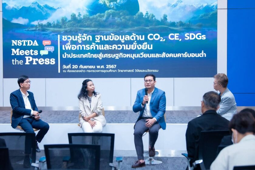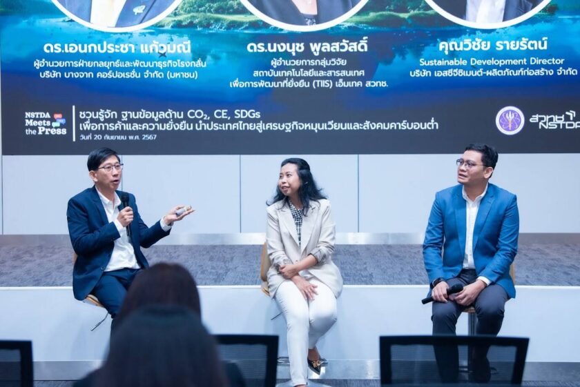 ดร.นงนุช พูลสวัสดิ์ ผู้อำนวยการกลุ่มวิจัย สถาบันเทคโนโลยีและสารสนเทศเพื่อการพัฒนาที่ยั่งยืน (TIIS) เอ็มเทค สวทช. กล่าวว่า สวทช. มุ่งมั่นที่จะพัฒนาและปรับปรุงฐานข้อมูลอย่างต่อเนื่อง เพื่อสนับสนุนการวิจัยและพัฒนานวัตกรรมที่เป็นมิตรต่อสิ่งแวดล้อม ผ่านความร่วมมือกับภาคอุตสาหกรรมและหน่วยงานที่เกี่ยวข้อง และเชื่อว่าการใช้ข้อมูลที่แม่นยำและครอบคลุมจะเป็นกุญแจสำคัญในการขับเคลื่อนประเทศไทยสู่เศรษฐกิจหมุนเวียนและสังคมคาร์บอนต่ำ ตามเป้าหมายการพัฒนาที่ยั่งยืน พร้อมทั้งเปิดเผยถึงความก้าวหน้าล่าสุดของฐานข้อมูล CO2 , CE, SDG ว่า สถาบัน TIIS ได้พัฒนาชุดข้อมูลค่าสัมประสิทธิ์การปล่อยก๊าซเรือนกระจก (Emission Factor: EF) ที่ครอบคลุม 22 กลุ่มอุตสาหกรรมสำคัญของประเทศ ซึ่งเป็นข้อมูลพื้นฐานสำหรับการออกแบบและรับรองฉลากสิ่งแวดล้อมของผลิตภัณฑ์ นอกจากนี้ ยังได้พัฒนาฐานข้อมูลและตัวชี้วัดที่เกี่ยวข้องกับเศรษฐกิจหมุนเวียน ได้แก่ ดัชนีการหมุนเวียนวัสดุ (Material Circularity Index, MCI) ในผลิตภัณฑ์เป้าหมาย 12 ประเภทของอุตสาหกรรมก่อสร้าง เพื่อสนับสนุนการประเมินและพัฒนาผลิตภัณฑ์ที่เป็นมิตรต่อสิ่งแวดล้อม ฐานข้อมูลเหล่านี้มีบทบาทสำคัญในการขับเคลื่อน BCG Economy และการพัฒนาที่ยั่งยืนของประเทศไทย โดยช่วยให้ภาคธุรกิจสามารถเปลี่ยนผ่านไปสู่เศรษฐกิจหมุนเวียนผ่านการใช้ทรัพยากรอย่างมีประสิทธิภาพ ปรับปรุงกระบวนการผลิตให้เกิดการใช้วัตถุดิบรอบสอง ส่งเสริมโมเดลธุรกิจหมุนเวียน รวมทั้งลดผลกระทบสิ่งแวดล้อมตลอดจนลดการปล่อยก๊าซเรือนกระจก “ดังตัวอย่างกรณีของบริษัท บางจาก คอร์ปอเรชั่น จำกัด (มหาชน) ที่ได้นำค่า EF จากฐานข้อมูลมาใช้ในการพัฒนาผลิตภัณฑ์เชื้อเพลิงจำนวน 5 ชนิด จนได้รับการขึ้นทะเบียนฉลากคาร์บอนจากองค์การบริหารจัดการก๊าซเรือนกระจก (อบก.) ในปี 2556 ส่งผลให้ผลิตภัณฑ์มีค่าการปลดปล่อยก๊าซเรือนกระจกที่ต่ำกว่ามาตรฐานทั้งในและต่างประเทศ ในขณะเดียวกัน บริษัท เอสซีจี ซิเมนต์-ผลิตภัณฑ์ก่อสร้าง จำกัด ได้นำดัชนี MCI มาประยุกต์ใช้ในการพัฒนาผลิตภัณฑ์ที่เป็นมิตรต่อสิ่งแวดล้อม ซึ่งเน้นการลดการใช้ทรัพยากรธรรมชาติ โดยนำวัสดุหมุนเวียนมาใช้ทดแทน โดยยังคงไว้ซึ่งคุณภาพและมาตรฐานของ เอสซีจี”