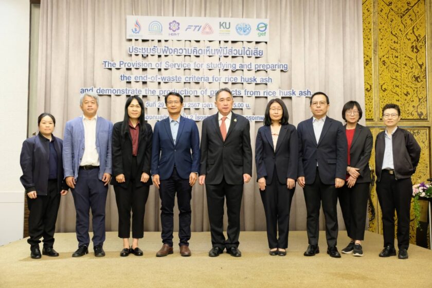 ดร.จุลพงษ์ ทวีศรี อธิบดีกรมโรงงานอุตสาหกรรม เป็นประธานเปิดการประชุมรับฟังความคิดเห็นภายใต้โครงการ “การผลิตสารละลายไบโอโซเดียมซิลิเกตและโอโพแทสเซียมซิลิเกตอย่างยั่งยืนจากเถ้าแกลบ เพื่อผลักดันสู่การสิ้นสุดความเป็นของเสีย (End-of-Waste) ของเถ้าแกลบ” (Provision of services for studying and preparing the end-of-waste criteria for rice husk ash and demonstrate the production of products from rice husk ash) โดยมี ดร.ปัทมวรรณ คุณประเสริฐ ผู้อำนวยการกองส่งเสริมเทคโนโลยีสิ่งแวดล้อมโรงงาน นายเอกบุตร อุตมพงศ์ รักษาการนักวิทยาศาสตร์เชี่ยวชาญ กองบริหารจัดการกากอุตสาหกรรม กรมโรงงานอุตสาหกรรม ดร.อุมา วิรัตน์สกุลชัย ผู้ประสานงานโครงการฯ องค์การพัฒนาอุตสาหกรรมแห่งสหประชาชาติ (UNIDO; United Nations Industrial Development Organization) ดร.สิทธิสุนทร สุโพธิณะ รองผู้อำนวยการศูนย์ฯ และคณะวิจัย จากศูนย์เทคโนโลยีโลหะและวัสดุแห่งชาติ (เอ็มเทค) สำนักงานพัฒนาวิทยาศาสตร์และเทคโนโลยีแห่งชาติ (สวทช.) ในฐานะที่ปรึกษาการดำเนินโครงการฯ คณะทำงานด้านเทคนิคสำหรับส่งเสริมการใช้ประโยชน์จากกากอุตสาหกรรมและการพัฒนาอุตสาหกรรมสีเขียว (TWG; Technical Working Group) และผู้แทนจากผู้มีส่วนได้ส่วนเสีย (Stakeholders) เข้าร่วมการประชุม