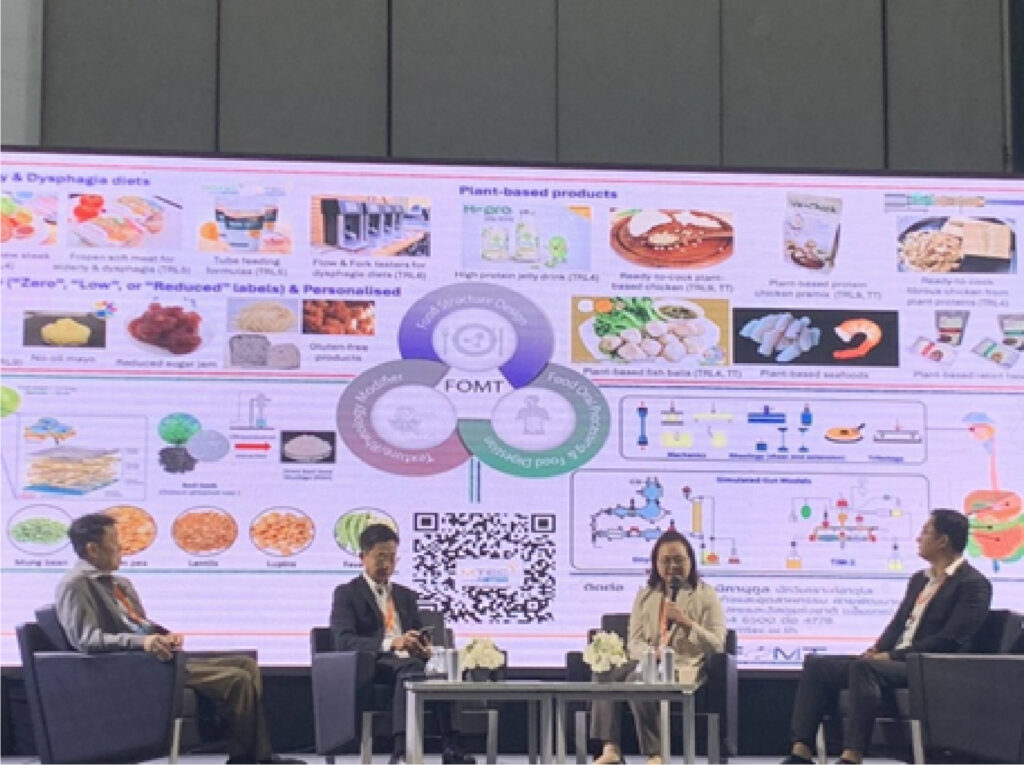 ดร.กมลวรรณ อิศราคาร นักวิจัย ทีมวิจัยวัสดุศาสตร์อาหาร ศูนย์เทคโนโลยีโลหะและวัสดุแห่งชาติ (เอ็มเทค) สวทช. เป็นวิทยากรร่วมบรรยายพิเศษ ภายใต้หัวข้อใหญ่ Smart Food Factory 2025: New Trend of Future Food Technology หัวข้อย่อย Future Food Technology เพื่ออัปเดตความรู้ให้แก่ผู้ประกอบการและผู้เข้าร่วมงาน FOOD PACK ASIA 2025 เมื่อวันพฤหัสบดีที่ 13 กุมภาพันธ์ 2568 ณ ศูนย์นิทรรศการและการประชุมไบเทค