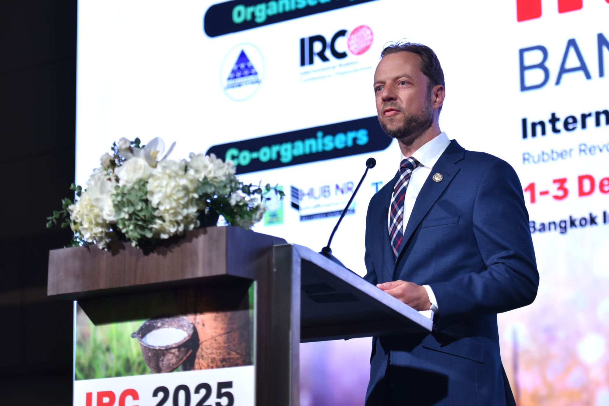พิธีเปิดเริ่มต้นด้วยคำกล่าวต้อนรับจาก รองศาสตราจารย์ ดร. ทวีชัย อมรศักดิ์ชัย นายกสมาคมโพลิเมอร์แห่งประเทศไทย และผู้ช่วยศาสตราจารย์ ดร. กฤษฎา สุชีวะ ประธานการจัดงาน IRC 2025 ทั้งสองท่านได้สะท้อนถึงศักยภาพของประเทศไทยในการเป็นศูนย์กลางด้านการวิจัยและพัฒนาวิชาการยางพาราในระดับภูมิภาค ต่อด้วยการกล่าวแสดงวิสัยทัศน์จากนายดิษฐเดช วัฒนาพร รองผู้ว่าการการยางแห่งประเทศไทย (RAOT) ในฐานะผู้แทนประเทศและผู้สนับสนุนหลัก พร้อมด้วยคำกล่าวจาก Mr.Peram Prasada Rao ประธานเจ้าหน้าที่บริหารและผู้ก่อตั้ง TechnoBiz เน้นถึงการผลักดันอุตสาหกรรมยางไทยให้ก้าวสู่การแข่งขันระดับสากล