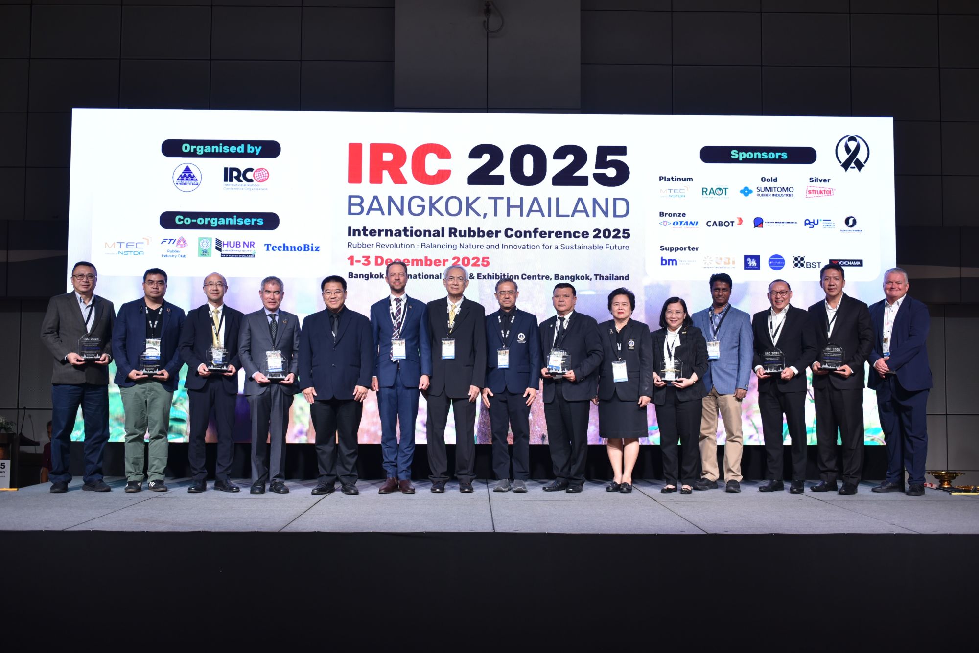 กระทรวงการอุดมศึกษา วิทยาศาสตร์ วิจัยและนวัตกรรม (อว.) โดยศูนย์เทคโนโลยีโลหะและวัสดุแห่งชาติ (เอ็มเทค) สำนักงานพัฒนาวิทยาศาสตร์และเทคโนโลยีแห่งชาติ (สวทช.) ร่วมกับสมาคมโพลิเมอร์แห่งประเทศไทย (Polymer Society of Thailand) และ International Rubber Conference Organization (IRCO) จัดพิธีเปิดการประชุมนานาชาติ International Rubber Conference 2025 (IRC 2025) อย่างเป็นทางการเป็นครั้งแรกในประเทศไทย การประชุมจัดขึ้นระหว่างวันที่ 1–3 ธันวาคม 2568 ภายใต้แนวคิด “Rubber Revolution: Balancing Nature and Innovation for a Sustainable Future” โดยมุ่งเน้นการเป็นเวทีระดับโลกที่เปิดโอกาสให้ผู้เชี่ยวชาญ นักวิจัย และผู้ประกอบการในอุตสาหกรรมยางพาราจากทั่วทุกมุมโลกได้ร่วมแลกเปลี่ยนองค์ความรู้และประสบการณ์ ตลอดจนเผยแพร่ผลงานวิชาการด้านวิทยาศาสตร์ เทคโนโลยี และวิศวกรรมของยางและผลิตภัณฑ์ยางอย่างกว้างขวาง