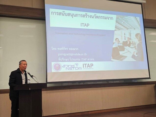 สำนักงานพัฒนาวิทยาศาสตร์และเทคโนโลยีแห่งชาติ (สวทช.) โดย ดร.สมบูรณ์ โอตรวรรณะ นักวิจัย ศูนย์เทคโนโลยีโลหะและวัสดุแห่งชาติ (เอ็มเทค) และนายพงศ์ภัทร ทองมาก ที่ปรึกษาอาวุโส ITAP เข้าร่วมเป็นวิทยากรในการประชุมเชิงปฏิบัติการ เรื่อง “การขยายผลนวัตกรรมเชิงสร้างสรรค์ที่ได้รับแรงบันดาลใจจากธรรมชาติ ในการบรรเทาการกัดเซาะชายฝั่งและการฟื้นฟูสิ่งแวดล้อมและชุมชนชายฝั่งสู่ระดับนโยบาย”