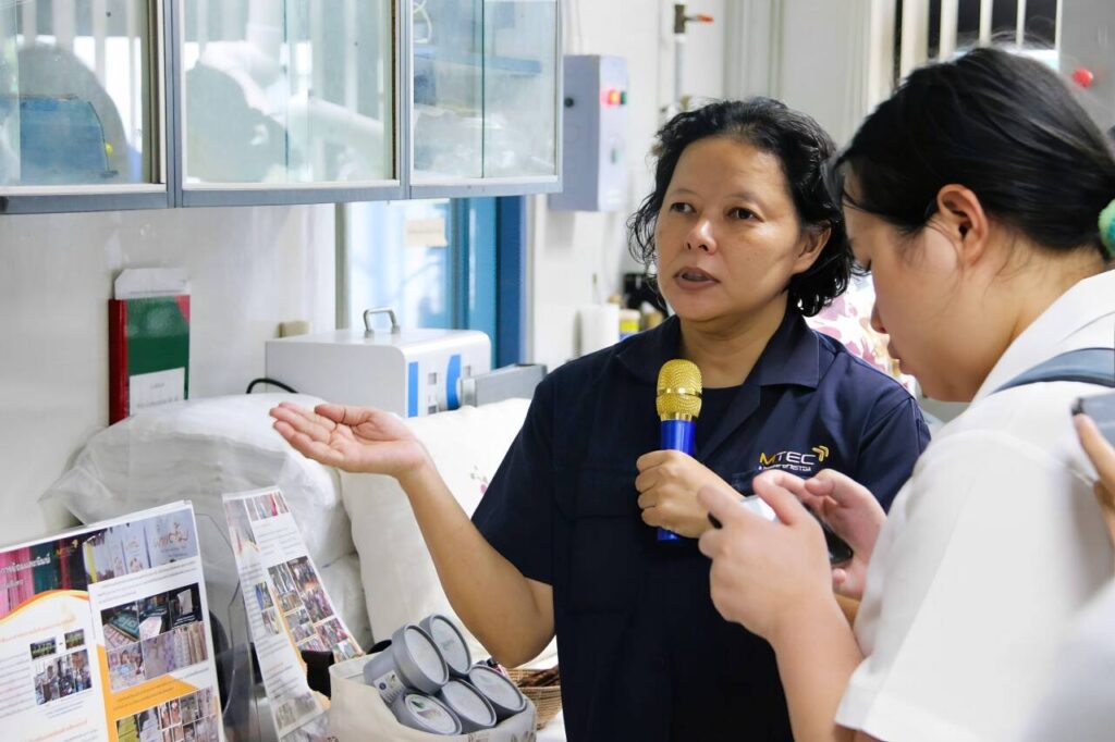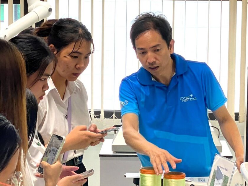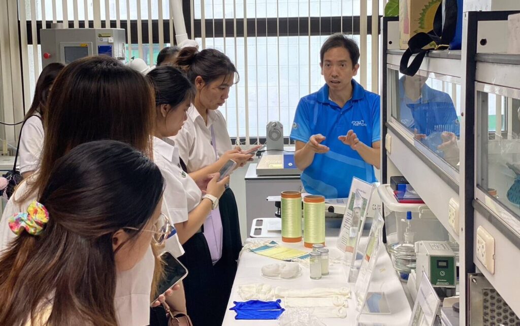 ศูนย์เทคโนโลยีโลหะและวัสดุแห่งชาติ (เอ็มเทค) สวทช. นำโดย ดร.ณัฐภพ สุวรรณเมฆ นักวิจัย พร้อมด้วย คุณบุปผา สมบูรณ์ ผู้ช่วยวิจัยอาวุโส ทีมวิจัยสิ่งทอ (TETT) กลุ่มวิจัยเทคโนโลยีโพลิเมอร์ขั้นสูง (APT) และทีม ร่วมต้อนรับนักศึกษาระดับปริญญาตรี ภาควิชาวิทยาการสิ่งทอ คณะอุตสาหกรรมเกษตร มหาวิทยาลัยเกษตรศาสตร์ ในโอกาสเยี่ยมชมห้องปฎิบัติการทีมวิจัยสิ่งทอ เพื่อให้นิสิตได้เรียนรู้แนวคิดหลักการการก่อรูปแผ่นเส้นใยและเทคโนโลยีการยึดติดแผ่นเส้นใยที่ใช้ในกระบวนการการผลิต ผ้าไม่ทอ พร้อมเยี่ยมชมเทคโนโลยีและเครื่องมือที่ทันสมัย