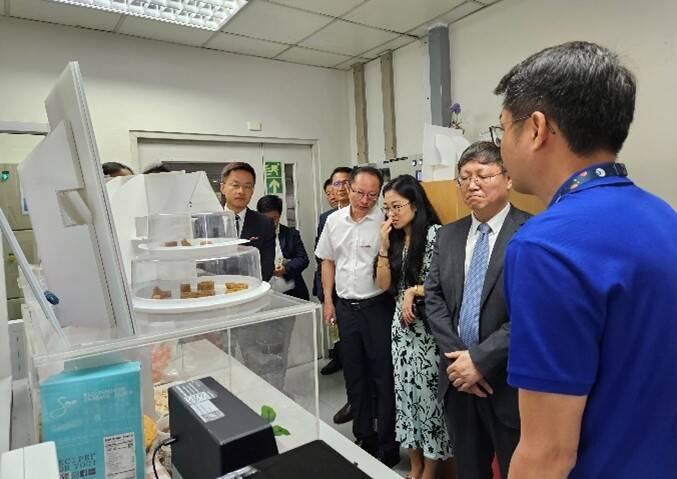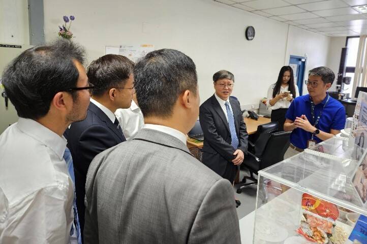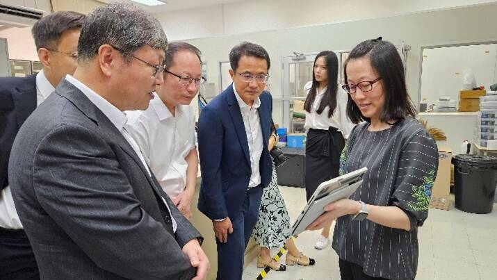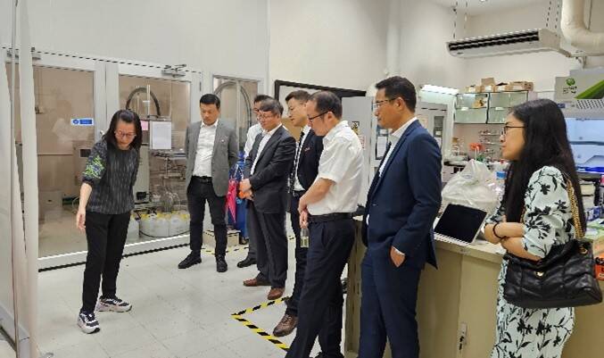 ในโอกาสนี้ ผศว. และรอง ผศว. (ดร.สิทธิสุนทร สุโพธิณะ) ได้นำคณะฯ เยี่ยมชมห้องปฏิบัติการของเอ็มเทค ได้แก่ ห้องปฏิบัติการวัสดุศาสตร์อาหาร โดยมี ดร.ชัยวุฒิ กมลพิลาส หัวหน้าทีมวิจัยวัสดุศาสตร์อาหาร (FOMT) กลุ่มวิจัยเทคโนโลยีโพลิเมอร์ขั้นสูง (APT) ให้การต้อนรับและแลกเปลี่ยนข้อมูลผลงานวิจัย ตลอดจนเทคโนโลยีต่างๆ ที่จำเป็นต่อการพัฒนาวัสดุศาสตร์อาหาร เพื่อนำไปสู่อาหารแห่งอนาคตที่เหมาะสมต่อคนทุกช่วงวัย และการมีสุขภาพที่ดีแบบยั่งยืน ปัจจุบันทีมวิจัยได้เล็งเห็นความสำคัญของการนำผลผลิตทางการเกษตรที่ผลิตภายในประเทศมาเป็นแหล่งวัตถุดิบ เพื่อทดแทนการนำเข้าจากต่างประเทศ เช่น ถั่วชิกพี ที่นำมาใช้ในการพัฒนาผลิตภัณฑ์ทดแทนเนื้อสัตว์ที่มีแหล่งโปรตีนทางเลือกจากพืช (Plant-based Protein) และ ห้องปฏิบัติการเทคโนโลยีการผลิตและซ่อมบำรุง โดยมี ดร.วนิดา พงศ์ศักดิ์สวัสดิ์ นักวิจัย ทีมวิจัยเทคโนโลยีการผลิตและซ่อมบำรุง (SMM) กลุ่มวิจัยเทคโนโลยีระบบรางและการขนส่งสมัยใหม่ (RMT) ให้การต้อนรับและแลกเปลี่ยนข้อมูลผลงานวิจัยทางด้านเทคโนโลยีปัญญาประดิษฐ์และ machine learning ที่นำมาประยุกต์ใช้ในการคาดการณ์และประเมินผลกระทบของสภาพภูมิอากาศที่มีต่อการกัดกร่อนของโครงสร้างที่ทำจากเหล็ก ซึ่งทีมวิจัยได้มีความร่วมมือกับผู้เชี่ยวชาญจากสาธารณรัฐประชาชนจีนมาอย่างยาวนาน และมีโครงการวิจัยที่ได้รับทุนร่วมกันทั้งแหล่งทุนภายในประเทศและแหล่งทุนต่างประเทศมาอย่างต่อเนื่อง