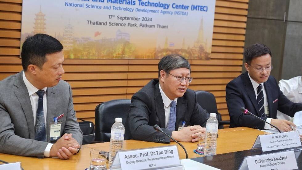 Mr. Ma Minggeng กล่าวว่า “ขอแสดงความยินดีกับ เอ็มเทค และ NJFU ที่ได้ลงนามบันทึกข้อตกลงความร่วมมือในวันนี้ ซึ่งความร่วมมือทางด้านนวัตกรรมวัสดุที่มีการนำไม้ไผ่มาใช้เป็นวัสดุทางเลือกนั้น ถือได้ว่าเป็นอีกก้าวหนึ่งที่สำคัญของทั้งสองประเทศที่จะได้มีความร่วมมือในด้านใหม่ๆ ในปัจจุบันสภาพภูมิอากาศที่เปลี่ยนแปลงไปเป็นหนึ่งในปัญหาใหญ่ที่ส่งผลกระทบไปทั่วโลก ไม่เพียงแต่ประเทศไทยเท่านั้น สาธารณรัฐประชาชนจีนเองก็ต้องเผชิญกับปัญหาและความท้าทายในการจัดการผลกระทบดังกล่าวเช่นเดียวกัน อย่างที่ทราบกันดี สาธารณรัฐประชาชนจีนเป็นประเทศที่มีพื้นที่กว้างใหญ่ และมีความหลากของภูมิประเทศ ดังนั้นจึงทำให้เห็นโอกาสอีกมากมายที่ประเทศไทยและจีนจะสามารถขยายความร่วมมือทางด้านการวิจัยและพัฒนานวัตกรรมในอีกหลายด้าน ตัวอย่างเช่น โครงการความร่วมมือที่ประสบความสำเร็จในการได้รับการสนับสนุนจากกองทุนพิเศษแม่โขง-ล้านช้าง หลายโครงการ ในนามของผู้แทนสถานเอกอัครราชทูตจีนประจำประเทศไทย จึงมีความยินอย่างยิ่งที่จะสนับสนุนและส่งเสริมความร่วมมือของทั้งสองประเทศ ในด้านอื่นๆ ผ่านการแลกเปลี่ยนองค์ความรู้ เทคโนโลยี และนวัตกรรม เพื่อนำไปสู่การพัฒนาที่ยั่งยืนต่อไป”