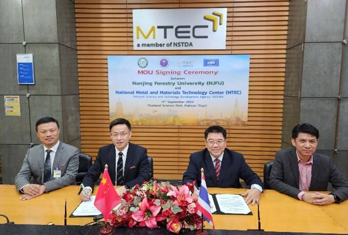 ศูนย์เทคโนโลยีโลหะและวัสดุแห่งชาติ (เอ็มเทค) พร้อมด้วย Nanjing Forestry University (NJFU) สาธารณรัฐประชาชนจีน จัดพิธีลงนามในบันทึกข้อตกลงความร่วมมือด้านการวิจัยและพัฒนา “การถ่ายทอดเทคโนโลยีนวัตกรรมวัสดุก่อสร้างทางเลือกจากไม้ไผ่ เพื่อลดผลกระทบจากปัญหาด้านสิ่งแวดล้อม” โดยมี รองศาสตราจารย์ ดร.เติมศักดิ์ ศรีคิรินทร์ ผู้อำนวยการ เอ็มเทค และ Professor Dr.Zhaoyang Xu คณบดี คณะวิทยาศาสตร์และวิศวกรรมศาสตร์วัสดุ (College of Materials Science and Engineering) มหาวิทยาลัยป่าไม้หนานจิง (Nanjing Forestry University, NJFU) ร่วมลงนามความร่วมมือ พร้อมกันนี้ได้รับเกียรติจาก Mr. Ma Minggeng ที่ปรึกษาด้านวิทยาศาสตร์และเทคโนโลยี สถานเอกอัครราชทูตจีนประจำประเทศไทย ดร.พสุภา ชินวรโสภาค อัครราชทูตที่ปรึกษา ฝ่ายวิทยาศาสตร์และเทคโนโลยี สถานเอกอัครราชทูตไทย ณ กรุงปักกิ่ง ดร.วรรณิภา คุดสีลา หน่วยบริหารและจัดการทุนด้านการพัฒนาระดับพื้นที่ (บพท.) ดร.ทิพย์จักร ณ ลำปาง หัวหน้าทีมวิจัยวิศวกรรมไม้เพื่อความยั่งยืน เอ็มเทค Associate Professor Dr.Tao Ding ผู้ช่วยผู้อำนวยการฝ่ายบุคคล NJFU คณะผู้บริหารและนักวิจัยทั้งสองหน่วยงาน เข้าร่วมงาน โดยวัตถุประสงค์ความร่วมมือครั้งนี้ เพื่อสนับสนุนและเสริมสร้างความเข้มแข็งการเกษตรแบบยั่งยืน พร้อมเพิ่มขีดความสามารถทางเทคโนโลยีนวัตกรรมวัสดุ โดยเน้นการถ่ายทอดเทคโนโลยีด้านการประยุกต์ใช้ไม้ไผ่เป็นวัสดุก่อสร้างทางเลือกที่เป็นมิตรต่อสิ่งแวดล้อม ระหว่างประเทศไทยและประเทศจีน รวมถึงการยกระดับอุตสาหกรรมในประเทศไทย