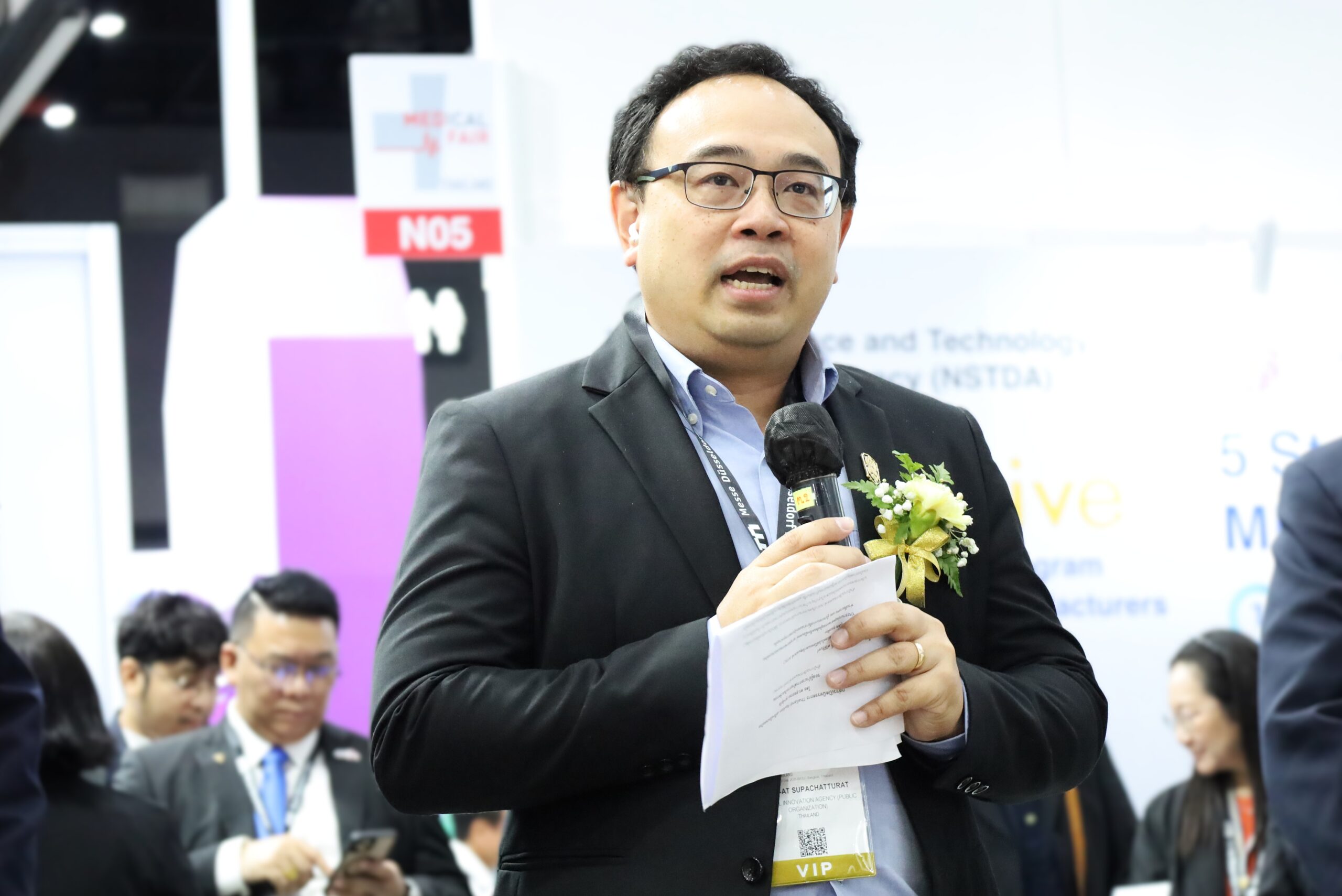 รองศาสตราจารย์ เติมศักดิ์ กล่าวเพิ่มเติมว่า “นอกจากนี้ ภายในงาน Medical Fair Thailand 2025 ครั้งนี้ เอ็มเทค สวทช. ยังได้จัดสัมมนา “Driving Thai MED Tech Forward” เพื่อสะท้อนถึงศักยภาพและแนวทางการยกระดับอุตสาหกรรมเครื่องมือแพทย์ไทยด้วยมาตรฐานระดับสากล โดยมีไฮไลต์สำคัญ เช่น การเปิดตัวบริการ Biocompatibility screening test (ISO 10993) ที่จะช่วยยืนยันความเข้ากันได้ทางชีวภาพของอุปกรณ์การแพทย์เบื้องต้น และการเปิด Open Call เชิญผู้ประกอบการเข้าร่วมพัฒนาเครื่องมือแพทย์ไทยจาก Partial สู่ Full CSDT ตามมาตรฐานสากล และจะมีเปิดตัว NSTDA MEDDrive Platform ซึ่งเป็นกลไกสำคัญที่จะช่วยเชื่อมโยงงานวิจัยสู่การใช้งานจริง สนับสนุนผู้ประกอบการไทยให้ก้าวเข้าสู่มาตรฐานสากลได้อย่างมั่นคง และเพิ่มโอกาสเข้าสู่ตลาดทั้งในประเทศและต่างประเทศ และความเชื่อมั่นว่า การจัดนิทรรศการ Thailand Pavilion ครั้งนี้ เป็นเวทีในการแสดงศักยภาพนวัตกรรมเครื่องมือแพทย์ไทย และเป็นจุดเริ่มต้นของเครือข่ายความร่วมมือที่จะนำพาอุตสาหกรรมเครื่องมือแพทย์ของไทยไปสู่ความยั่งยืนในอนาคตต่อไป”