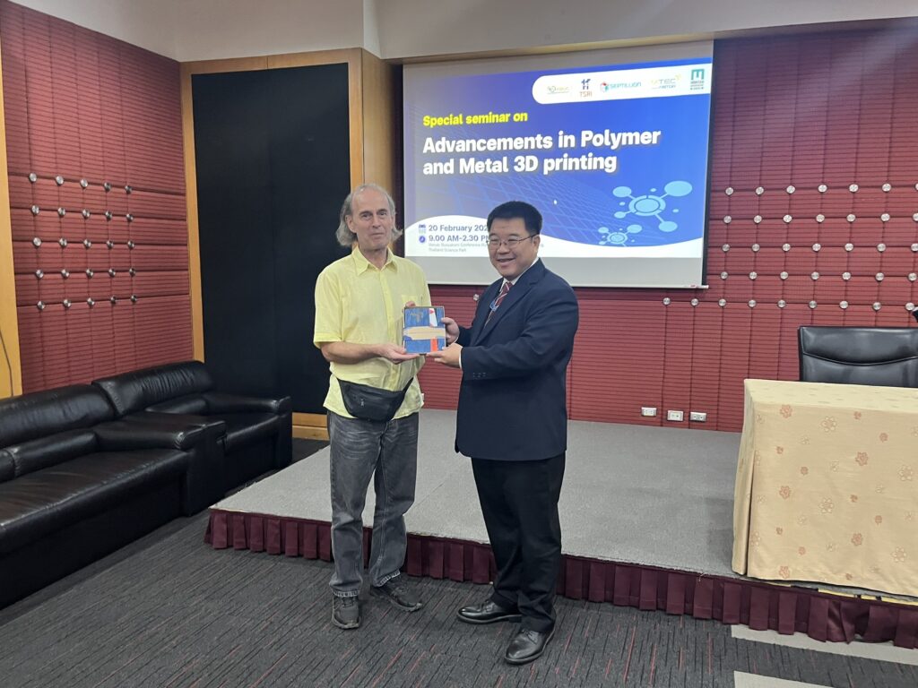 โดยในวันที่ 20 กุมภาพันธ์ 2568 ณ ห้องบุษกร อาคารเนคเทค อุทยานวิทยาศาสตร์ประเทศไทย ทางโครงการได้มีการจัดงานสัมมนาพิเศษหัวข้อ “Advancements in Polymer and Metal 3D printing” การสัมมนาครั้งนี้ได้รับเกียรติจาก รศ.ดร. เติมศักดิ์ ศรีคิรินทร์ ผู้อำนวยการเอ็มเทค เป็นประธานในการกล่าวเปิดงาน โดยมีผู้เชี่ยวชาญด้านเทคโนโลยีการพิมพ์สามมิติด้วยวัสดุเส้นเข้าร่วมเป็นวิทยากรและบรรยายใน 7 หัวข้อหลัก ได้แก่