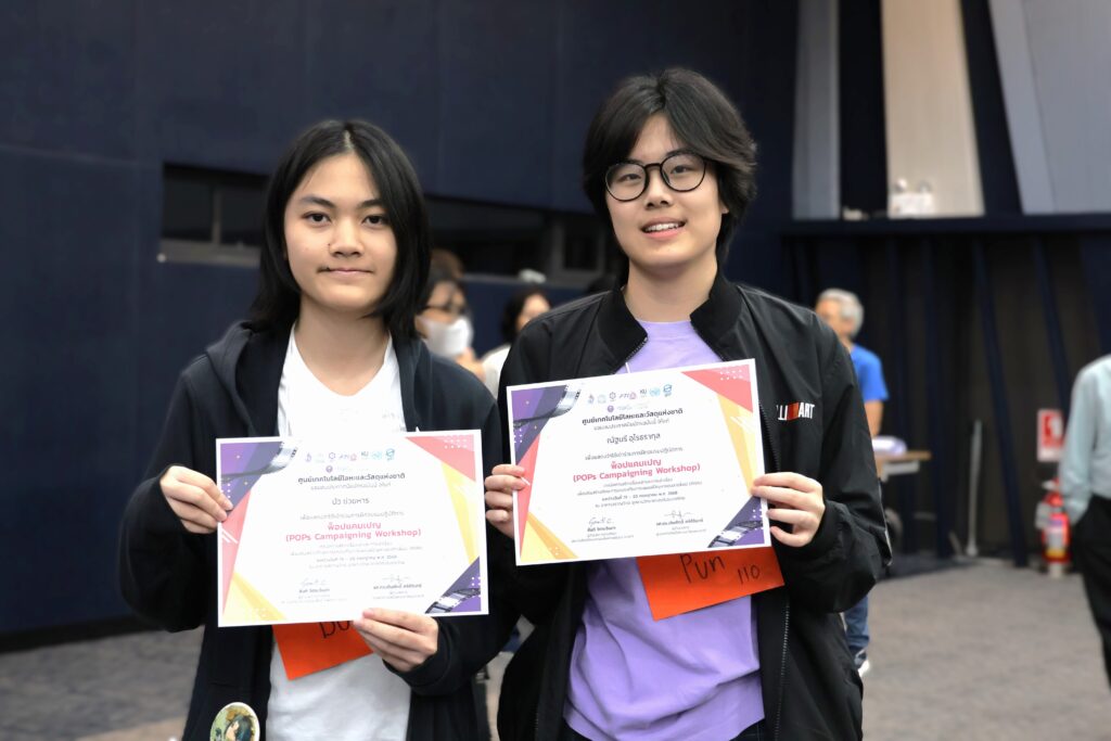 ผู้เข้าร่วมที่ผ่านการอบรมครบทั้ง 2 วัน ได้รับประกาศนียบัตร และสิทธิ์ส่งผลงานหนังสั้นความยาว 2 นาที เข้าประกวดในหัวข้อ “พ็อปจ๋า ลาก่อน ขอให้ชีวิตนี้ไม่มีเธอ – POPs-Free Living Short Film Contest” ชิงเงินรางวัลและเกียรติบัตร รวมมูลค่ากว่า 150,000 บาท ผลงานที่ผ่านการคัดเลือกจะจัดแสดงในงานนิทรรศการช่วงเดือนกันยายน 2568 โดยภายในงานจะมีการนำเสนอผลงานของเยาวชน รวมถึงประกาศผลและมอบรางวัลแก่ผู้ชนะการประกวดอย่างเป็นทางการ นอกจากนี้ ยังเปิดโอกาสให้ผู้สนใจเข้าร่วมรับชม ส่งแรงเชียร์ และแลกเปลี่ยนประสบการณ์ด้านการสื่อสารเพื่อสังคมร่วมกัน