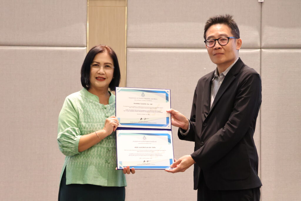 ด้าน คุณอารยา ไสลเพชร รองอธิบดีกรมอุตสาหกรรมพื้นฐานและการเหมืองแร่ (กพร.) ให้เกียรติเป็นประธานเปิดงานสัมมนา พร้อมมอบประกาศนียบัตรแก่ผู้ประกอบการที่เข้าร่วมโครงการพัฒนาและยกระดับสมรรถนะผู้ประกอบการอุตสาหกรรม เพื่อเชื่อมโยงสู่ตลาดเศรษฐกิจหมุนเวียนด้วยนวัตกรรมและเทคโนโลยี|