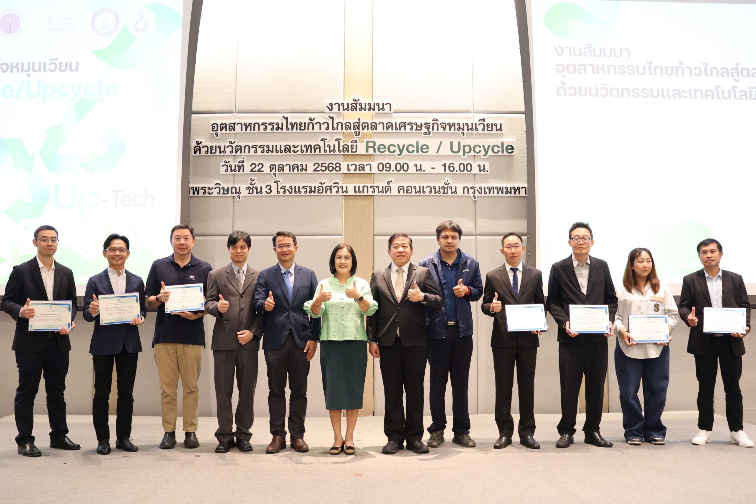 ศูนย์เทคโนโลยีโลหะและวัสดุแห่งชาติ (เอ็มเทค) สำนักงานพัฒนาวิทยาศาสตร์และเทคโนโลยีแห่งชาติ (สวทช.) ร่วมกับ กรมอุตสาหกรรมพื้นฐานและการเหมืองแร่ (กพร.) จัดงานสัมมนา “อุตสาหกรรมไทยก้าวไกลสู่ตลาดเศรษฐกิจหมุนเวียน ด้วยนวัตกรรมและเทคโนโลยี Recycle/Upcycle” ภายใต้การดำเนินงานโครงการพัฒนาและยกระดับสมรรถนะประกอบการอุตสาหกรรม เพื่อเชื่อมโยงสู่ตลาดเศรษฐกิจหมุนเวียน ด้วยนวัตกรรมและเทคโนโลยี โดยได้รับความสนใจจากผู้ประกอบการ หน่วยงานภาครัฐ และนักวิจัยเข้าร่วมเป็นจำนวนมาก