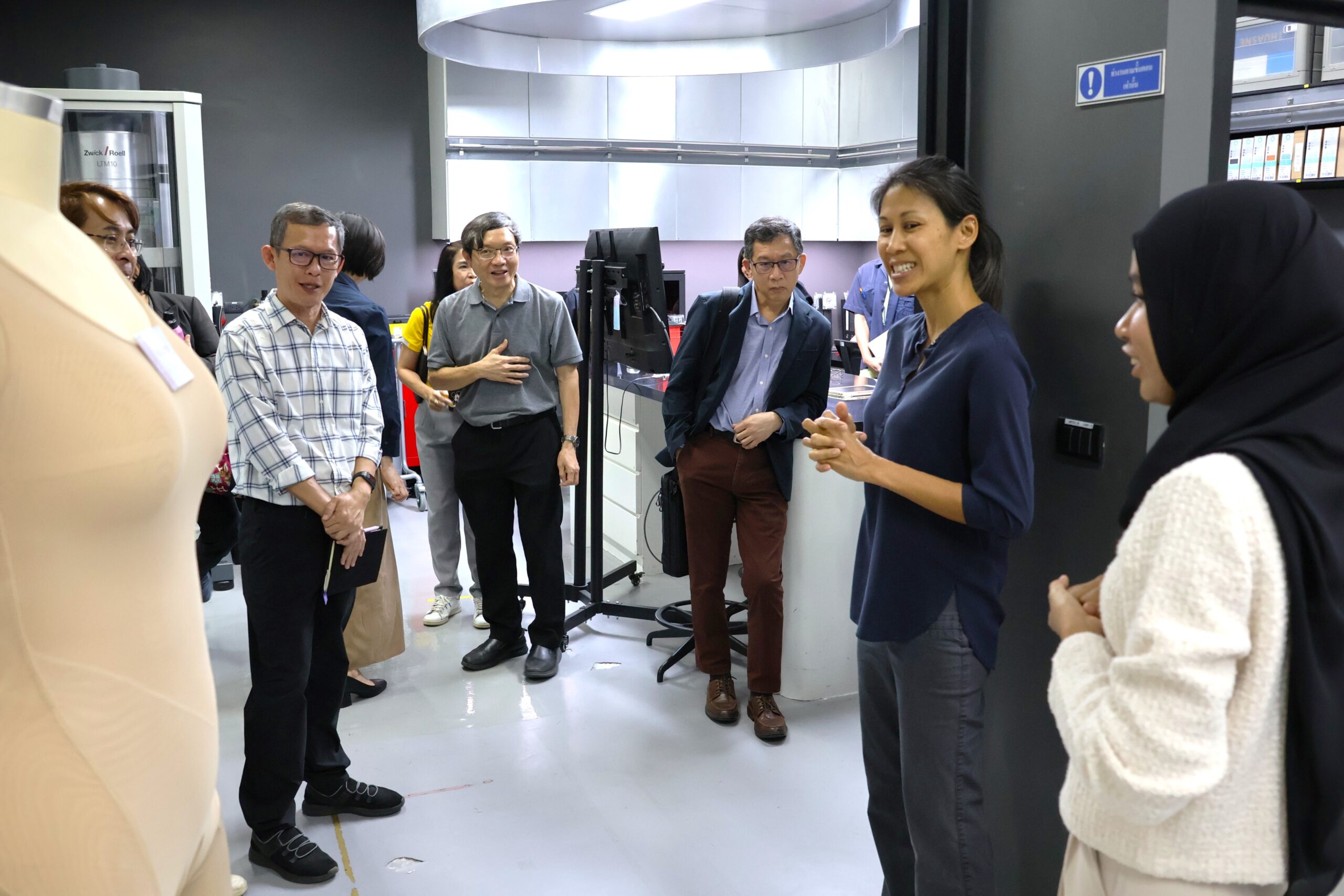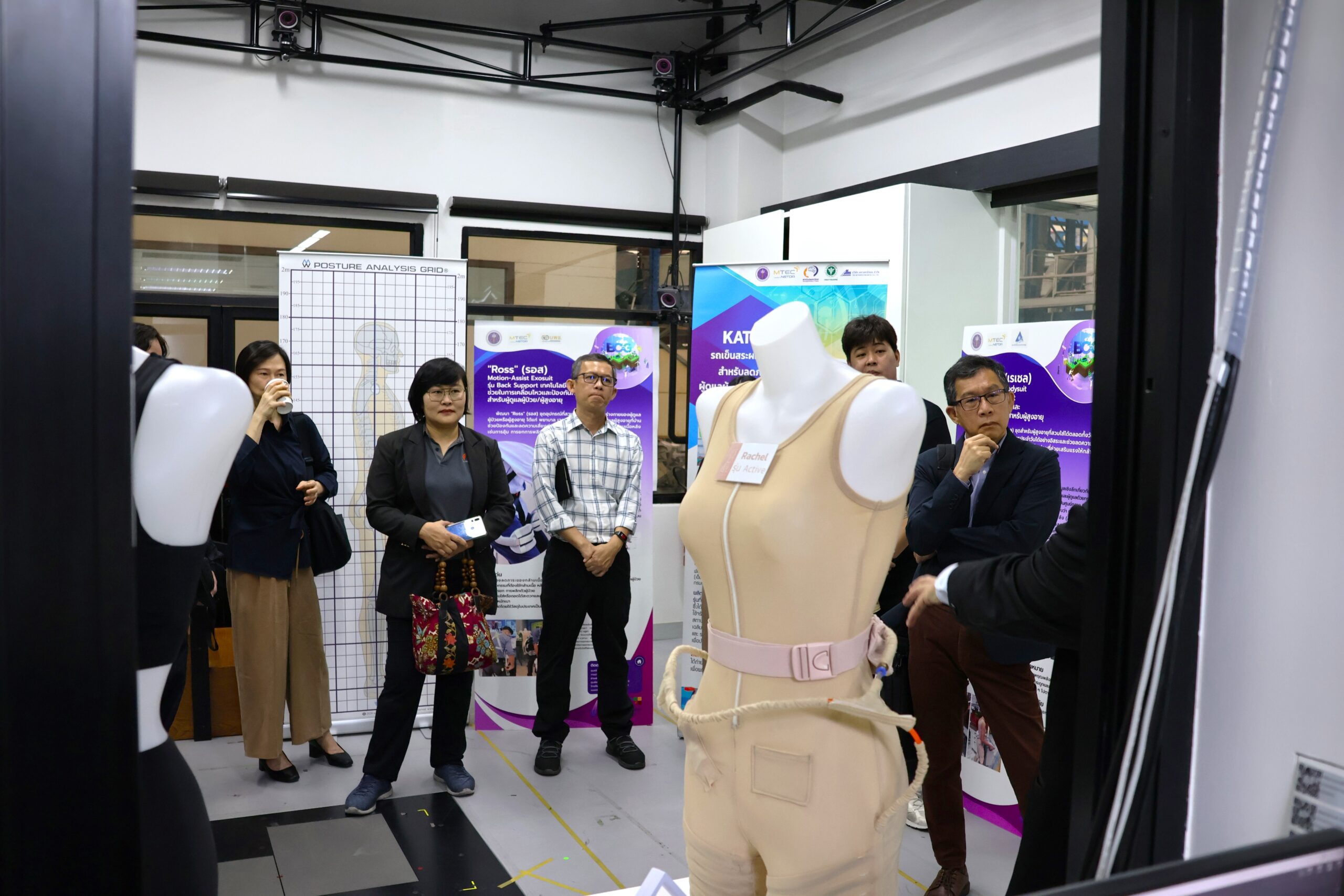 ในโอกาสนี้ เอ็มเทค ได้นำคณะเยี่ยมชมห้องปฏิบัติการวิจัย Wearable Technology Consulting Service ซึ่งเป็นห้องปฏิบัติการที่ให้คำปรึกษา วิจัยและพัฒนาด้านการทดสอบผลิตภัณฑ์อุปกรณ์วัดและประมวลผลด้านสุขภาพแบบสวมใส่ อาทิ ชุดบอดี้สูท “เรเชล” (Rachel) รุ่นแอ็กทิฟ ที่ช่วยเสริมแรงกล้ามเนื้อสำหรับผู้สูงอายุ และชุดพยุงหลัง “รอส” (Ross) ที่ช่วยลดภาระกล้ามเนื้อหลังสำหรับบุคลากรทางการแพทย์และผู้ดูแลผู้ป่วย เป็นต้น