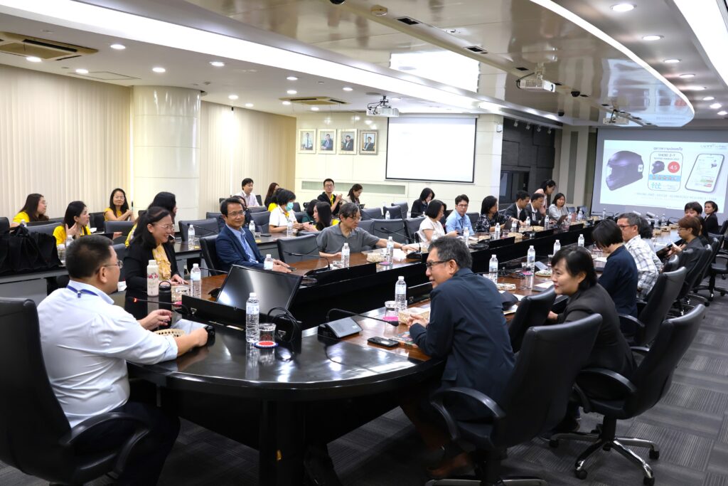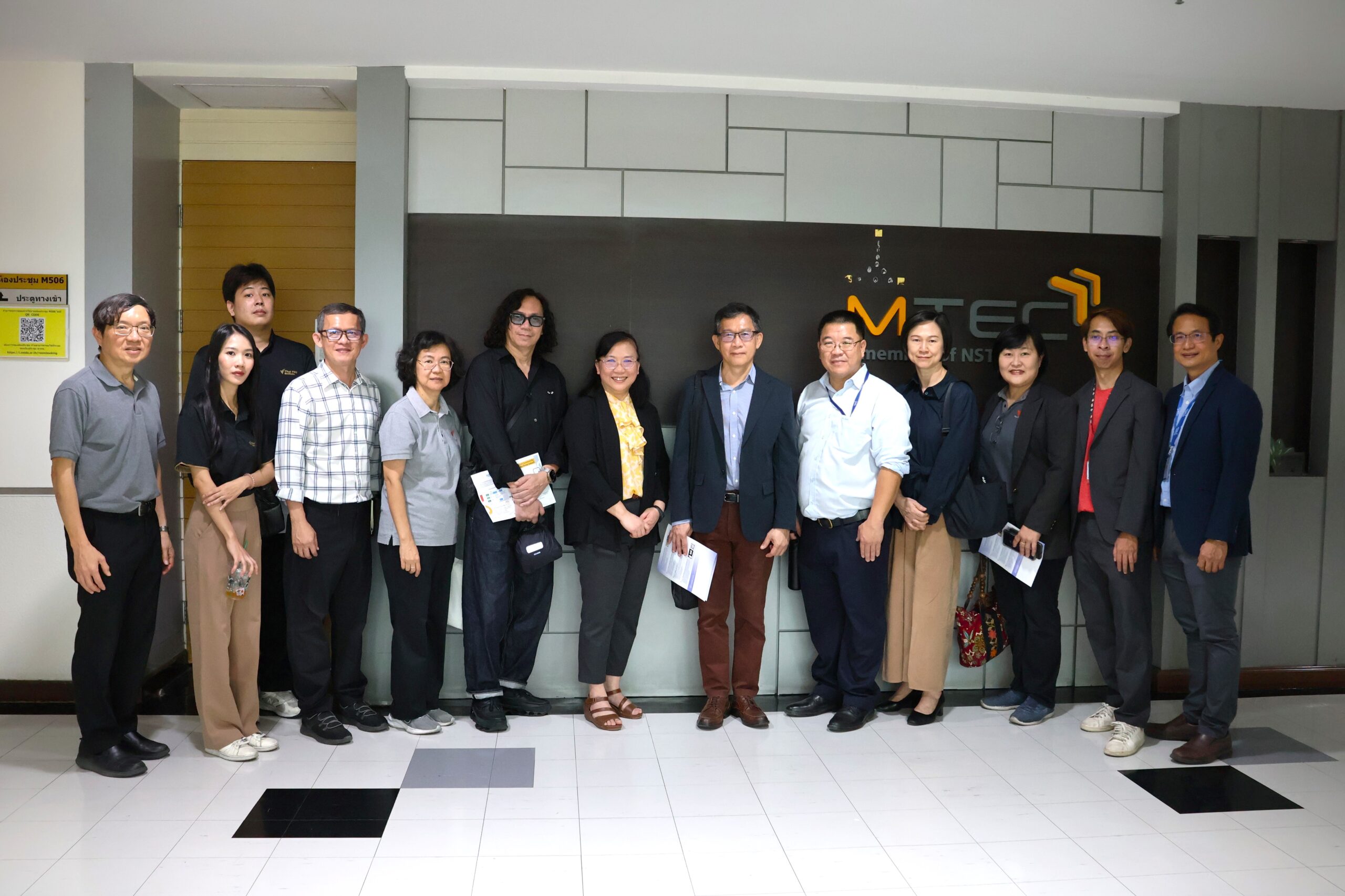 ช่วงท้าย คุณสมยศ เกียรติอร่ามกุล รองผู้อำนวยการ ส.ส.ท.ด้านสร้างสรรค์และหลอมรวมเนื้อหา และคณะได้ร่วมหารือแลกเปลี่ยนความคิดเห็นร่วมกับ ผู้บริหารและทีมวิจัยเกี่ยวกับแนวทางการขยายผลการวิจัยไปสู่การใช้งานจริง โดยมุ่งเน้นเป้าหมายสำคัญของเอ็มเทคในการผลักดันผลงานวิจัยให้ได้รับการรับรองและบรรลุผลเชิงนโยบายในอนาคต เช่น การพัฒนา “ฉลากรับรองคุณภาพ” สำหรับหมวกกันน็อก อุปกรณ์ทางการแพทย์ และ CE Plastics เพื่อเสริมสร้างมาตรฐานด้านความปลอดภัยและสุขภาพของประชาชน เพื่อพัฒนางานวิจัยที่ตอบโจทย์ความต้องการของสังคม และส่งเสริมการนำงานวิจัยไปสู่การใช้งานจริงอย่างเป็นรูปธรรม