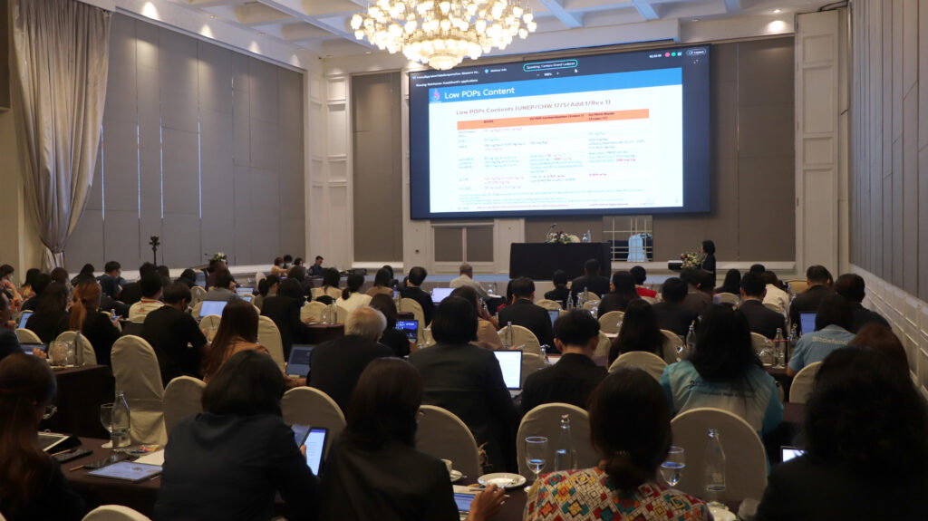 นางสาวประไพศรี อาสนรัตนจินดา ผู้อำนวยการส่วนสารอันตราย กรมควบคุมมลพิษ นำเสนอในประเด็นสำคัญ ได้แก่ การขึ้นทะเบียน“ข้อยกเว้นพิเศษ” สำหรับสาร POPs กลุ่ม MCCPs “ภายใต้อนุสัญญาสตอกโฮล์ม เพื่อให้ประเทศไทยมีระยะเวลาในการเปลี่ยนผ่านการใช้สารทดแทนหรือกระบวนการผลิตเพื่อเลิกการใช้สารกลุ่ม MCCPs โดยกระบวนการพิจารณาการขึ้นทะเบียนจำเป็นที่ต้องได้รับความร่วมมือจากภาคผู้ประกอบการในการให้ข้อมูลในรายการข้อยกเว้นพิเศษสำหรับการผลิตและการใช้สารกลุ่ม MCCPs พร้อมแนวทางควบคุมการปลดปล่อยสารออกสู่สิ่งแวดล้อม การป้องกันผลกระทบต่อสุขภาพของผู้ปฏิบัติงาน และการเฝ้าระวังการปนเปื้อน เพื่อเสนอคณะกรรมการภายในประเทศ พิจารณาก่อนแจ้งต่อสำนักเลขาธิการอนุสัญญาฯ โดยระยะเวลาข้อยกเว้นไม่เกิน 5 ปี และสามารถต่ออายุได้อีก 5 ปี หากมีเหตุผลจำเป็นและได้รับความเห็นชอบจากที่ประชุมรัฐภาคี”