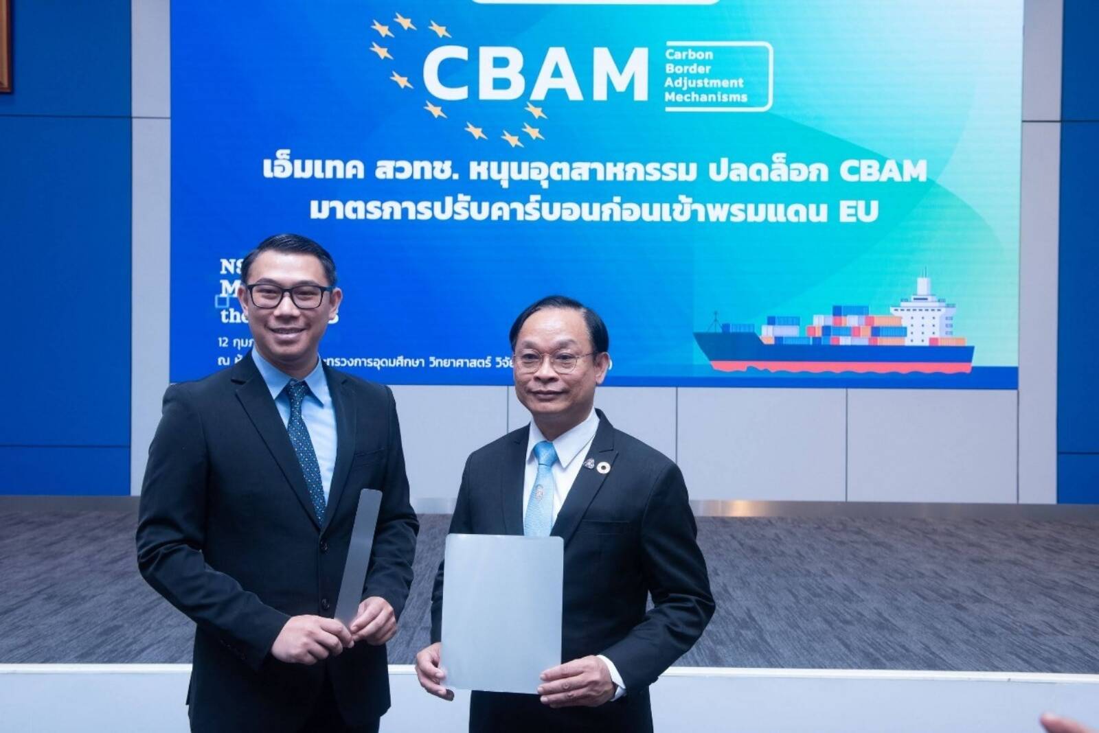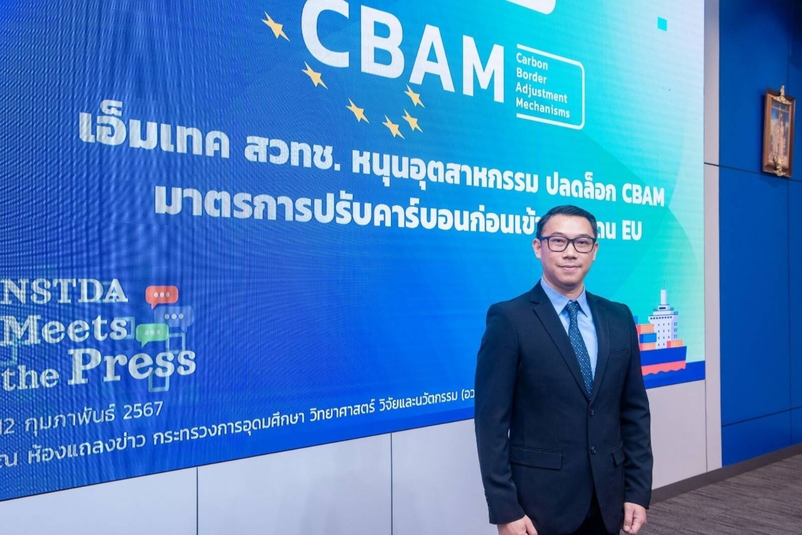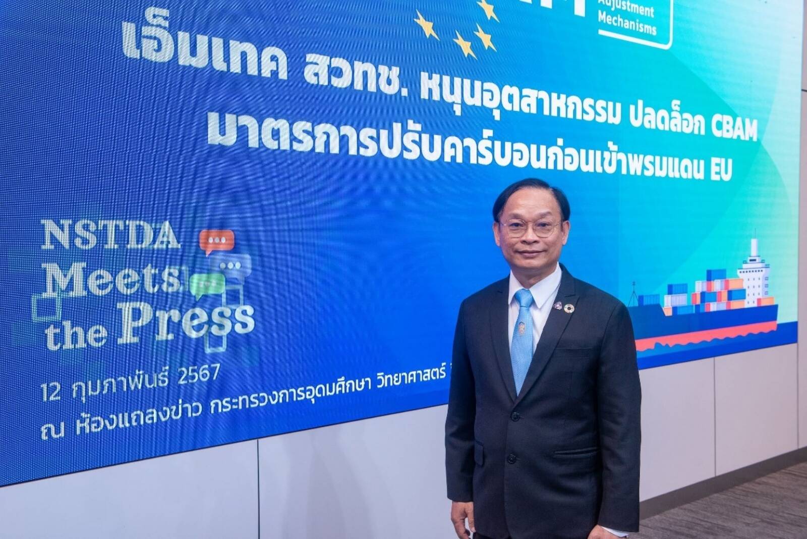 สำนักงานพัฒนาวิทยาศาสตร์และเทคโนโลยีแห่งชาติ (สวทช.) กระทรวงการอุดมศึกษา วิทยาศาสตร์ วิจัยและนวัตกรรม (อว.) นำโดย ดร.จิตติ มังคละศิริ หัวหน้าทีมวิจัยพัฒนาฐานข้อมูลตลอดวัฏจักรชีวิตและการประยุกต์เพื่อการพัฒนาที่ยั่งยืนและการค้า สถาบันเทคโนโลยีและสารสนเทศเพื่อการพัฒนาที่ยั่งยืน ศูนย์เทคโนโลยีโลหะและวัสดุแห่งชาติ (เอ็มเทค) สำนักงานพัฒนาวิทยาศาสตร์และเทคโนโลยีแห่งชาติ (สวทช.) พร้อมด้วย นายธีรพันธุ์ พิมพ์ทอง ประธานกิตติมศักดิ์กลุ่มอุตสาหกรรมอะลูมิเนียม สภาอุตสาหกรรมแห่งประเทศไทย (ส.อ.ท.) ให้สัมภาษณ์พิเศษสื่อมวลชน ในกิจกรรม NSTDA Meets the Press เรื่อง: มาตรการ CBAM ใครพร้อม ได้ไปต่อ ชวนปลดล็อก การปรับคาร์บอนก่อนเข้าพรมแดนสหภาพยุโรป หรือ EU