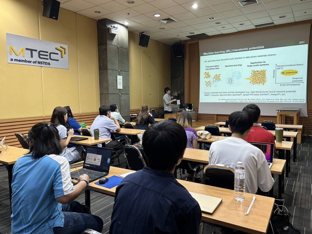 เอ็มเทค สวทช. โดย ดร.ต้องใจ ชูขจร นักวิจัย ทีมวิจัยระบบอัตโนมัติสำหรับกระบวนการทางวัสดุ กลุ่มวิจัยกระบวนการทางวัสดุและการผลิตอัตโนมัติ ได้จัดกิจกรรม Special Talk ขึ้น โดยมีวัตถุประสงค์เพื่อให้ความรู้แก่ผู้ที่สนใจทางด้านการศึกษา Neural Network Potential Study of Complex Solid Systems ในครั้งนี้ได้รับเกียรติจาก ดร.โคจิ ชิมิสึ (Dr. Koji Shimizu) ผู้ช่วยศาสตราจารย์ประจำภาควิชาวิศวกรรมวัสดุ มหาวิทยาลัยโตเกียว ประเทศญี่ปุ่น (Department of Materials Engineering, the University of Tokyo, Japan) มาเป็นวิทยากรบรรยาย