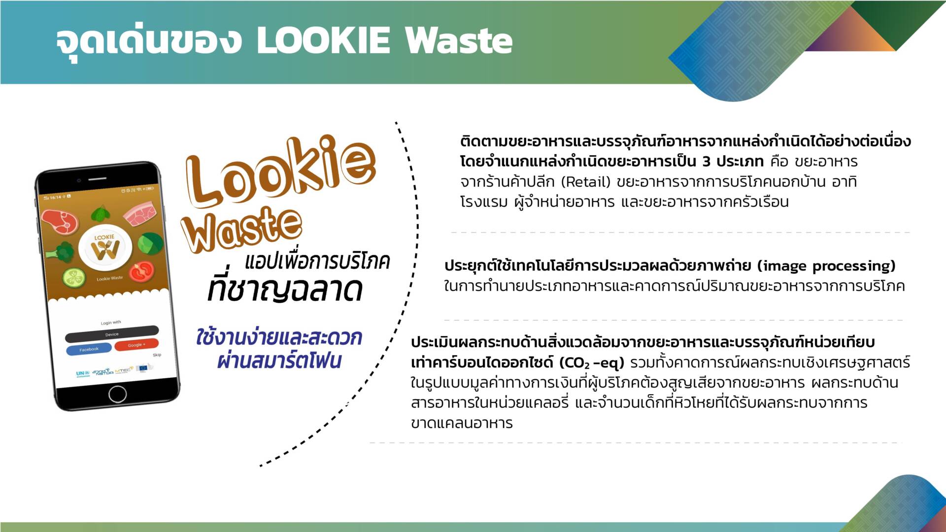 ตัวอย่างผลงานวิจัยเด่น เช่น Lookie Waste: แอปพลิเคชันตรวจสอบปริมาณขยะอาหารและบรรจุภัณฑ์อาหาร โดยทีมวิจัยเศรษฐกิจหมุนเวียนและการวิเคราะห์ข้อมูลเชิงบูรณาการเพื่อการฟื้นสร้างอย่างยั่งยืน (CEDAR) สถาบันเทคโนโลยีและสารสนเทศเพื่อการพัฒนาที่ยั่งยืน (TIIS) ศูนย์เทคโนโลยีโลหะและวัสดุแห่งชาติ (MTEC) สวทช. ใช้ตรวจสอบปริมาณขยะอาหารและบรรจุภัณฑ์อาหารที่เกิดขึ้นในชีวิตประจำวันของแต่ละบุคคลเพื่อสร้างความตระหนักให้แก่ผู้บริโภค ซึ่ง Lookie Waste มีจุดเด่นคือ