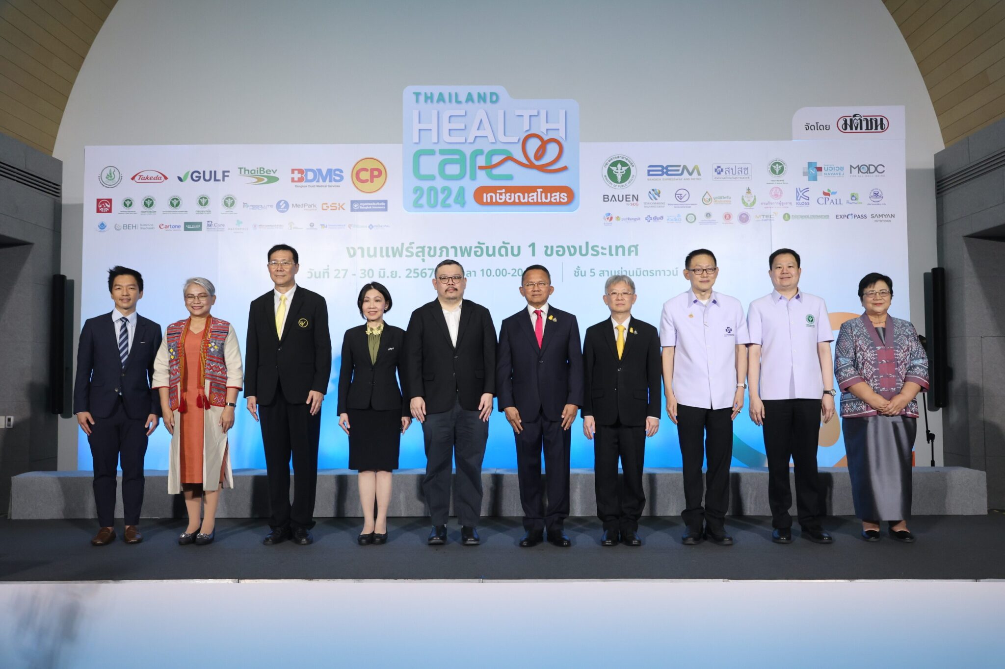 นายสมศักดิ์ เทพสุทิน รัฐมนตรีว่าการกระทรวงสาธารณสุข (สธ.) เป็นประธานในพิธีเปิดงาน Thailand Healthcare 2024 ‘เกษียณสโมสร’ ที่สามย่านมิตรทาวน์ฮอลล์ ชั้น 5 สามย่านมิตรทาวน์ จัดโดยเครือมติชน ร่วมกับองค์กรและหน่วยงานพันธมิตรสุขภาพทั้งภาครัฐและเอกชน ทั้งนี้ มี นพ.โอภาส การย์กวินพงศ์ ปลัด สธ. นายกิตติกร โล่ห์สุนทร เลขานุการรัฐมนตรีว่าการ สธ. พญ.อัมพร เบญจพลพิทักษ์ อธิบดีกรมการแพทย์ นพ.จเด็จ ธรรมธัชอารี เลขาธิการสำนักงานหลักประกันสุขภาพแห่งชาติ (สปสช.) นพ.ณรงค์ อภิกุลวณิช เลขาธิการคณะกรรมการอาหารและยา นพ.ปองพล วรปรานิ รองอธิบดีกรมอนามัย และคณะผู้บริหาร สธ.เข้าร่วม มี นายปราปต์ บุนปาน กรรมการผู้จัดการ บริษัท มติชน จำกัด (มหาชน) พร้อมด้วย คณะผู้บริหารจากเครือมติชน ให้การต้อนรับ