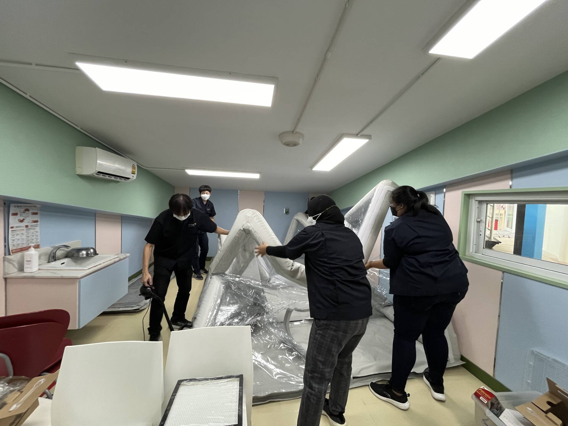 โดยมีวัตถุประสงค์ในการให้บริการผู้ป่วยที่มีอาการผิดปกติเกี่ยวกับระบบทางเดินหายใจ เช่น ไอ จาม เจ็บคอ มีน้ำมูก มีไข้ คัดจมูกหรือเสมหะรวมทั้งการคัดกรองผู้ป่วยทั่วไปและผู้ป่วยกลุ่มเสี่ยงเข้าเกณฑ์ COVID –19 ให้รับการตรวจคนละจุดเพื่อลดการแพร่ระบาดของไวรัส โดยสามารถใช้ห้องแยกผู้ป่วยความดันลบ (เต็นท์ HI PETE) เป็นส่วนพื้นที่คัดกรองของคลินิก ARI หรือ คลินิกคัดกรองโรคติดเชื้อทางเดินหายใจเป็นบริการ One Stop Service ที่จัดให้บริการแยกกับผู้ป่วยที่ไม่ได้มีอาการคล้ายไข้หวัดหรืออาการใกล้เคียงโควิด 19 ซึ่งการลงทะเบียน พบแพทย์ วินิฉัย รักษา รับยา ตลอดจนชำระค่าบริการจะดำเนินการให้แล้วเสร็จในจุดเดียว โดยได้ดำเนินการติดตั้งและทดสอบประสิทธิภาพมาตรฐานห้องสะอาดและสภาพแวดล้อมที่มีการควบคุมอ้างอิงมาตรฐาน ISO 14644 ในขั้นตอนติดตั้งต้นแบบพร้อมเครื่องมือแพทย์ (At rest with equipment installed) และขั้นตอนการใช้งานต้นแบบ (At operation)
