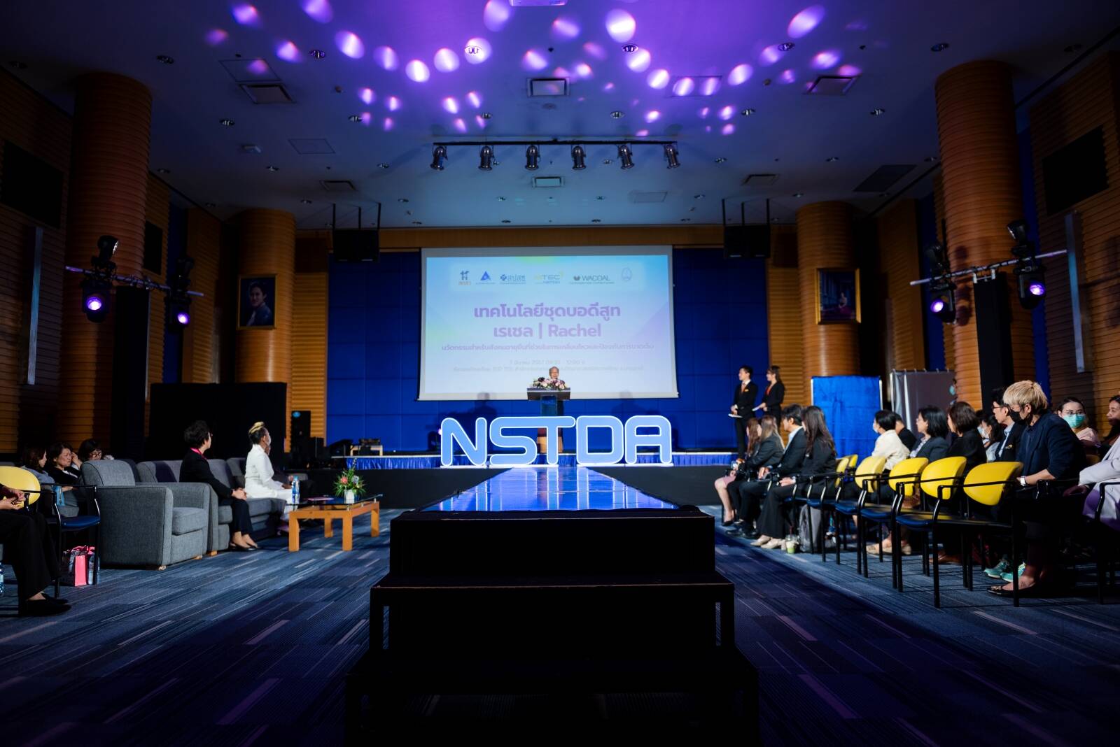 กระทรวงการอุดมศึกษา วิทยาศาสตร์ วิจัยและนวัตกรรม (อว.) สำนักงานพัฒนาวิทยาศาสตร์และเทคโนโลยีแห่งชาติ (สวทช.) โดยศูนย์เทคโนโลยีโลหะและวัสดุแห่งชาติ (เอ็มเทค) ร่วมกับ สถาบันวิจัยระบบสาธารณสุข (สวรส.) สำนักงานคณะกรรมการส่งเสริมวิทยาศาสตร์ วิจัยและนวัตกรรม (สกสว.) และบริษัท ไทยวาโก้ จำกัด (มหาชน) เปิดตัวนวัตกรรมชุดบอดีสูท “เรเชล (Rachel)” โดยมีวิทยากรผู้เชี่ยวชาญด้านต่าง ๆ ร่วมแลกเปลี่ยนความคิดเห็นให้ข้อมูลเกี่ยวกับนวัตกรรมเพื่อสังคมอายุยืน