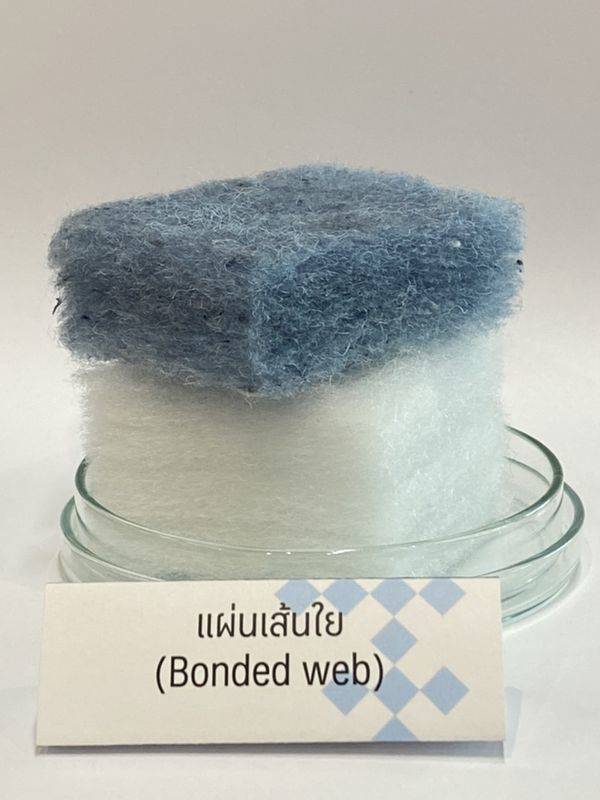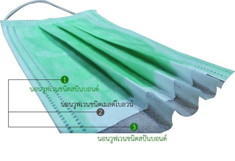 1)นอนวูฟเวนชนิดสปันบอนด์ (สีเขียว) 2) นอนวูฟเวนชนิดเมลต์โบลวน์ (สีขาว) 3) นอนวูฟเวนชนิดสปันบอนด์ (สีขาว)