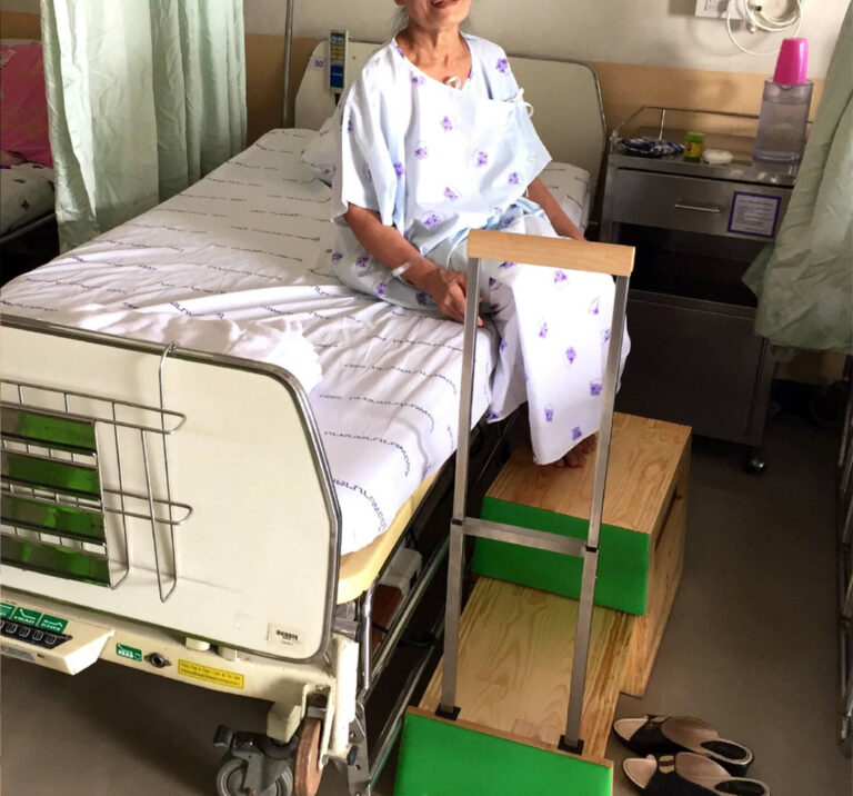 เราเรียกเล่นๆ ว่า AED คือทำเพื่อไปกระตุ้นหัวใจผู้ใช้ให้ได้ ผมยกตัวอย่างผลิตภัณฑ์แรกที่เราทำคือไปแก้ปัญหาการพลัดตกหกล้ม แต่จะเป็นบริบทในโรงพยาบาลซึ่งเกือบทุกที่จะมีปัญหาว่าผู้สูงอายุที่มานอนโรงพยาบาลมักจะหกล้มในจังหวะที่ก้าวลงจากเตียง นี่เป็นปัญหาใหญ่มาก