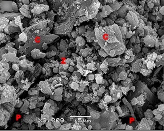 (C คือ ถ่านกัมมันต์ P คือ รูพรุน และ Z คือ ซีโอไลต์)