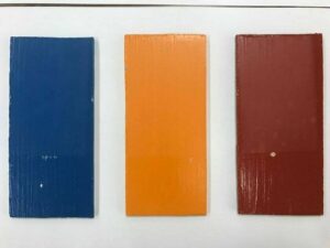 ในงานวิจัยทีมวิจัยนำผงสีน้ำเงิน สีแดง และสีส้มที่สังเคราะห์ได้มาวิจัยและพัฒนาเป็นสีเคลือบสะท้อนความร้อนให้มีค่าการสะท้อนรังสีอาทิตย์ใกล้เคียงกับสีเคลือบที่เตรียมจากผงสีทางการค้า