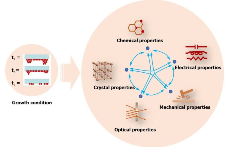ภาพที่ 1 แสดงความเชื่อมโยงของสมบัติฟิล์มบางที่ผันแปรตามชุดพารามิเตอร์ในงานวิจัยของเอ็มเทค