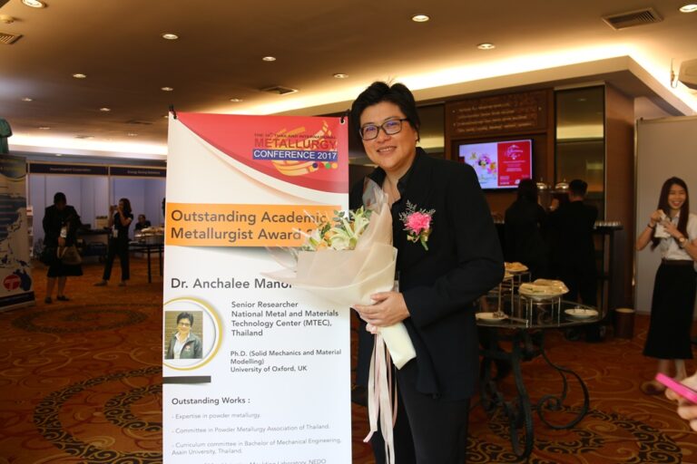 ดร. อัญชลี มโนนุกูล นักวิจัยอาวุโส เอ็มเทค สวทช.รับรางวัลนักโลหวิทยาดีเด่นด้านวิชาการ ประจำปี 2559งาน “การประชุมวิชาการทางโลหวิทยาแห่งประเทศไทย ครั้งที่ 10”(The 10th Thailand International Metallurgy Conference หรือ TIMETC-10)รางวัลนักโลหวิทยาดีเด่น (Thailand Metallurgist Award) เป็นรางวัลเพื่อเชิดชูเกียรตินักโลหวิทยาไทยที่มีผลงานดีเด่นและมีคุณค่าต่อวงการโลหวิทยาของประเทศไทย และเพื่อเป็นแรงขับเคลื่อนสนับสนุนให้มีการพัฒนาองค์ความรู้ทางด้านโลหวิทยาที่ก่อให้เกิดประโยชน์ต่อการพัฒนาเศรษฐกิจและอุตสาหกรรมที่เกี่ยวข้องกับโลหะภายในประเทศ และเสริมสร้างศักยภาพของบุคลากรในแวดวงโลหการสู่เวทีระดับอาเซียน โดยจัดงานประกาศผลรางวัลนักโลหะวิทยา ใน “การประชุมวิชาการทางโลหะวิทยาแห่งประเทศไทย”