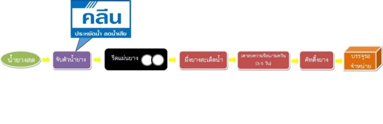 - “คลีน” นวัตกรรมใหม่เพื่อการจับตัวน้ำยางแบบประหยัดน้ำและลดน้ำเสียในกระบวนการผลิตยางแผ่น (รมควัน) ช่วยลดการใช้น้ำในกระบวนการจับตัวน้ำยางตามวิธีแบบปกติที่ใช้อยู่ในปัจจุบัน ทั้งในส่วนการเจือจางน้ำยางสดและการเจือจางกรด ส่งผลให้ช่วยลดปริมาณการใช้น้ำสะอาดกว่าร้อยละ 95 และยังช่วยลดน้ำเสียที่เกิดขึ้นหลังขั้นตอนการจับตัวเนื้อยางได้กว่าร้อยละ 90 ทำให้ช่วยลดภาระการทำงานของระบบบำบัดน้ำและลดการใช้พลังงานได้ส่งผลต่อการลดต้นทุนการผลิตได้อีกทางหนึ่ง รวมถึงสร้างความยืดหยุ่นในการวางแผนการผลิตเพื่อช่วยลดจำนวนและขนาดของตะกงจับตัวให้เหมาะสมกับปริมาณน้ำยางสดต่อวัน