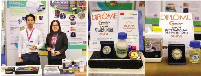 - รางวัล Special Prize จาก China Delegation และ รางวัลเหรียญเงิน (Silver medal) ในสาขา Protection of environment-energy จากผลงาน “ ULA-Asphalt Latex: Ultra Low Ammonia Natural Rubber Latex for Mixing with Asphalt Cement in Road Construction”