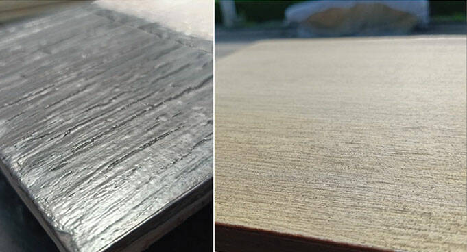 4. แผ่นมีความแข็งสูง ไม่เปราะแตกง่าย สามารถตัด เจาะ ตอก ไสได้ จึงสามารถใช้งานได้เช่นเดียวกับวัสดุก่อสร้างชนิดอื่น ๆ เช่น กระเบื้อง ไม้เทียม หรือ ไม้ เป็นต้น