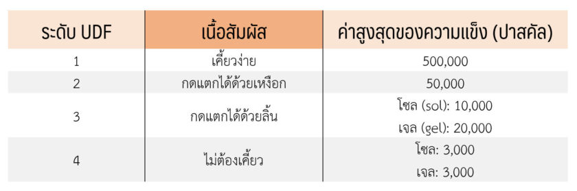 ค่าความแข็งสูงสุดของผลิตภัณฑ์อาหารตามมาตรฐาน UDF ของประเทศญี่ปุ่น