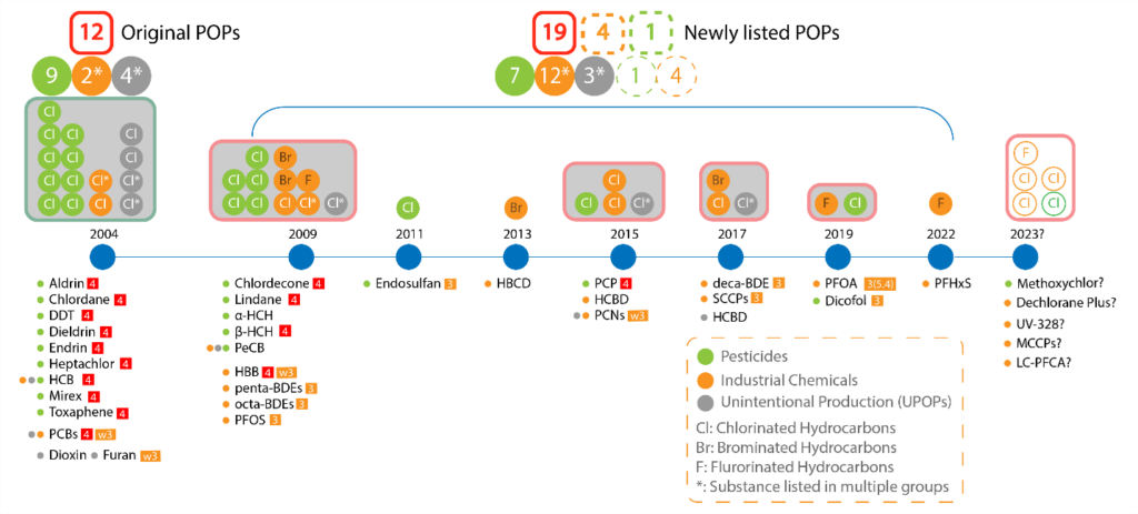 ครอบคลุมสาร POPs จำนวน 15 รายการ ที่อยู่ในบัญชีใหม่ ณ ปี พ.ศ. 2560 (ไม่รวมสาร SCCPs) ได้แก่