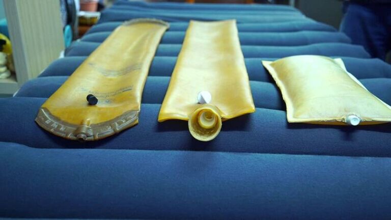 อย่างไรก็ดี ต้นแบบถุงพีวีซีสำหรับใส่ปัสสาวะมีข้อจำกัดเนื่องจากมีอายุการใช้งานสั้น ถุงไม่ยืดหยุ่นและแตกง่าย คุณกานต์ชนิตจึงพยายามหาวัสดุอื่นมาทดแทน ในช่วงเวลานั้นมีข่าวเรื่องราคายางพาราตกต่ำ จึงเกิดความคิดที่จะใช้ยางพารามาผลิตเป็นที่นอนน้ำเพื่อเป็นการช่วยเหลือเกษตรกรไทย จึงได้ติดต่อการยางแห่งประเทศไทยเพื่อให้ช่วยออกแบบและผลิตต้นแบบรุ่นต่อมา พบว่าใช้งานได้ดีกว่าการใช้ถุงพีวีซีสำหรับใส่ปัสสาวะถุงใหม่ แต่ยังมีข้อจำกัดที่การผลิตทำได้ยาก คุณภาพไม่สม่ำเสมอ ลอนที่นอนสั้น เมื่อนำมาต่อกันจะมีร่องและรอยต่อที่ทำให้เกิดความอับชื้น เสี่ยงต่อการเกิดแผลติดเชื้อในผู้ป่วยได้ อีกทั้งมักเกิดรอยรั่วบริเวณจุกพลาสติกที่ใช้เติมน้ำและบริเวณก้นของลอนที่นอนที่ใช้กาวประสาน
